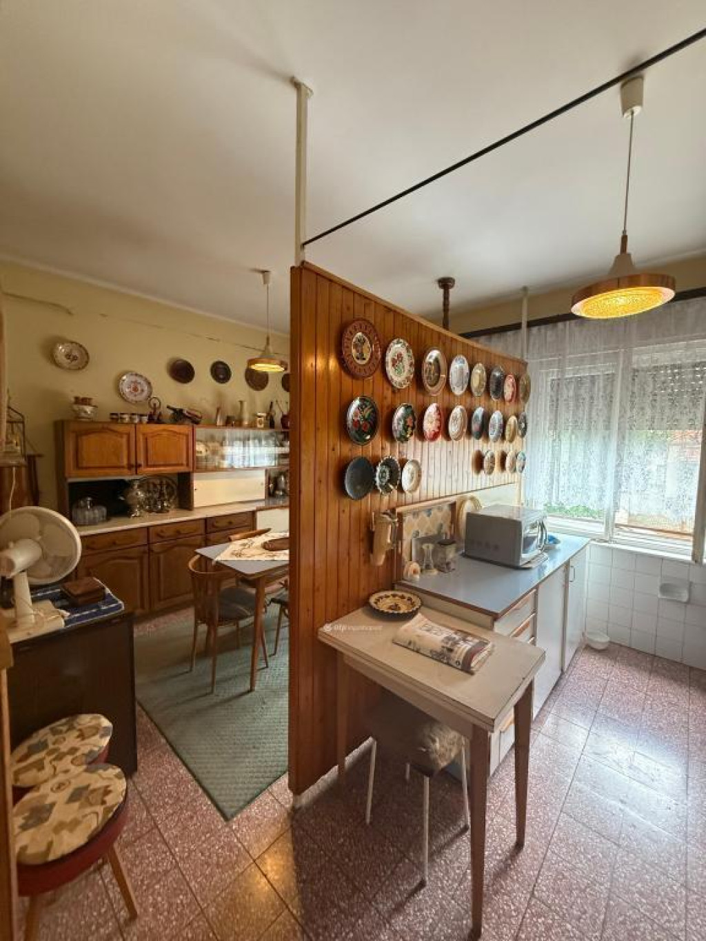 A félszuterin szinten nagyméretű garázs és négy további helyiség található, ahol akár külön garzonlakás, mosókonyha vagy konditerem is kialakítható. A ház fűtéséről gázkonvektor gondoskodik, a melegvízről villanybojler. A 675 m2-es sík saroktelek tágas kertet biztosít, az ingatlan pedig tehermentes és azonnal költözhető.