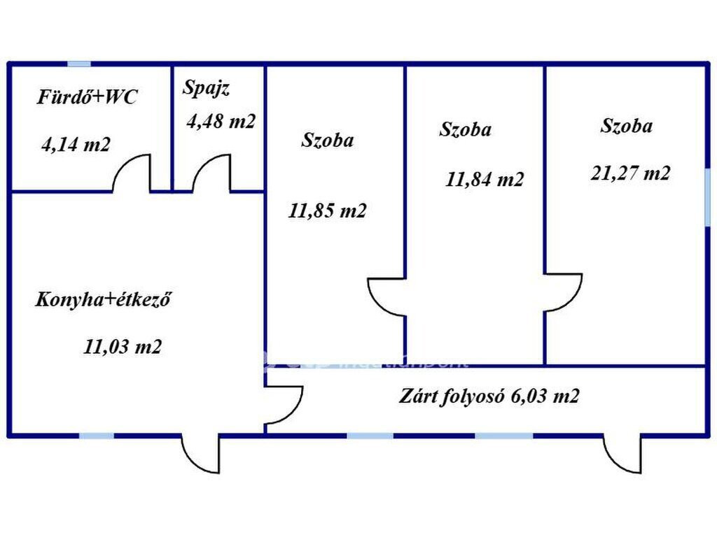 Helyiségek: 3 szoba, konyha, fürdőszoba, WC és egy praktikus kamra.