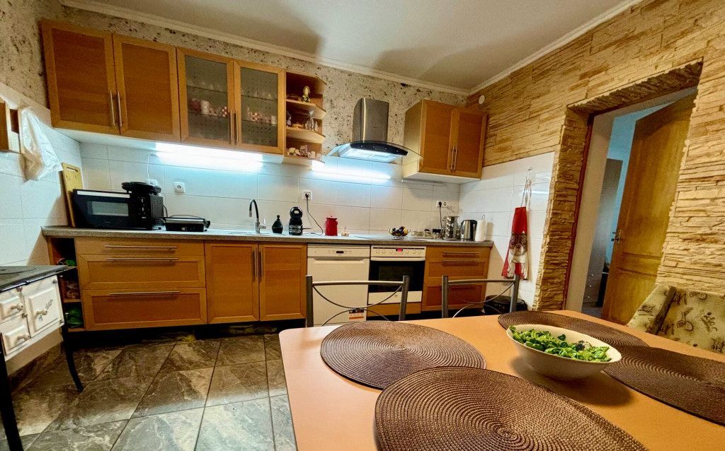 A házba lépve egy tágas, világos előszoba fogadja a látogatót, amely bőséges helyet kínál az indulás előtti készülődéshez. A ház többségében járólappal burkolt, egy szoba kivételével, melyet laminált padló borít. A konyha-étkező helyiségben IKEA-s beépített konyhabútor kapott helyet, amely a mosogatógép kivételével a vételár részét képezi – így a mindennapok kényelmét már a beköltözés pillanatától biztosítja.