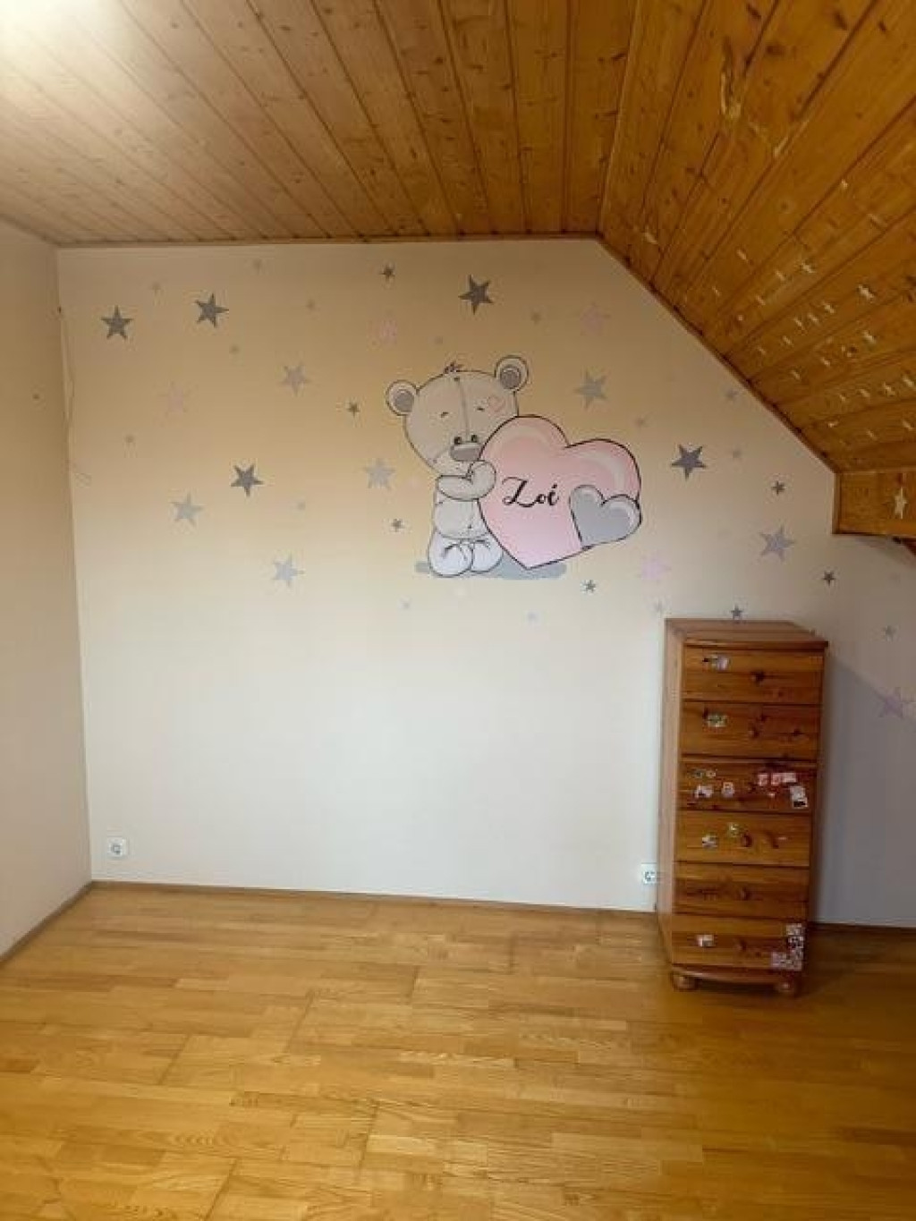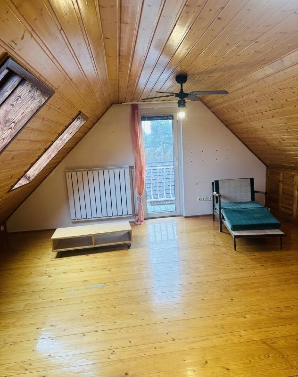A ház jó állapotú a ,beépített tetőtérrel és egy kisebb mélygarázzsal rendelkezik, további parkolási lehetőség egy külön álló fűthető garázsban.