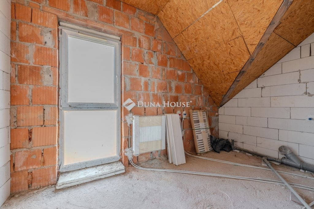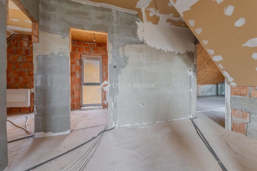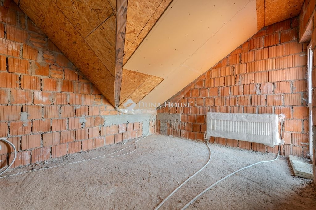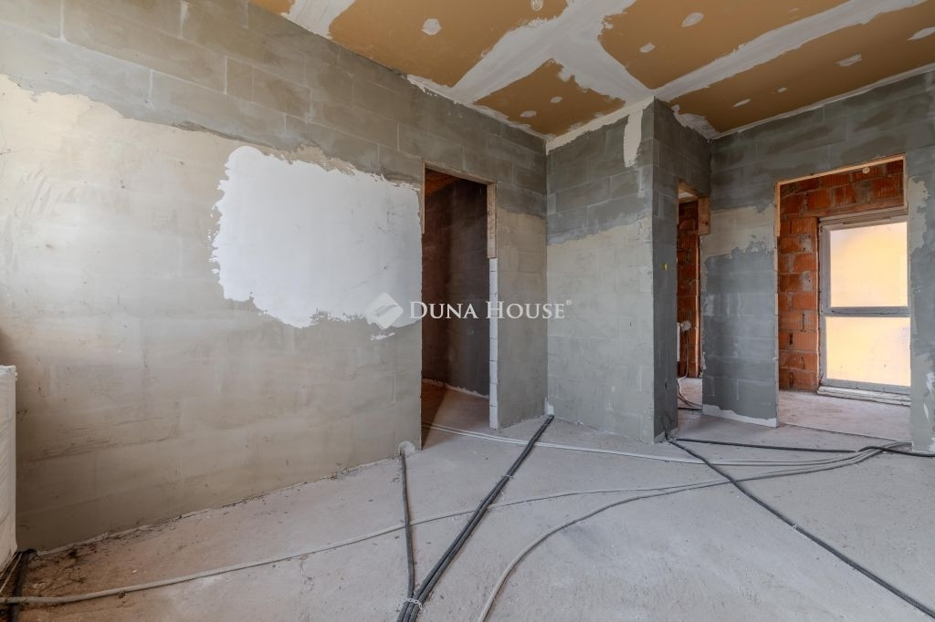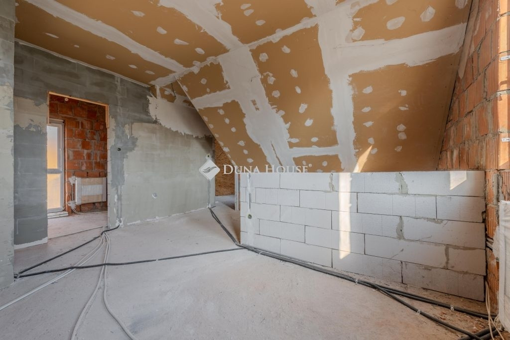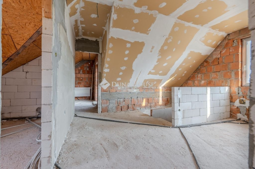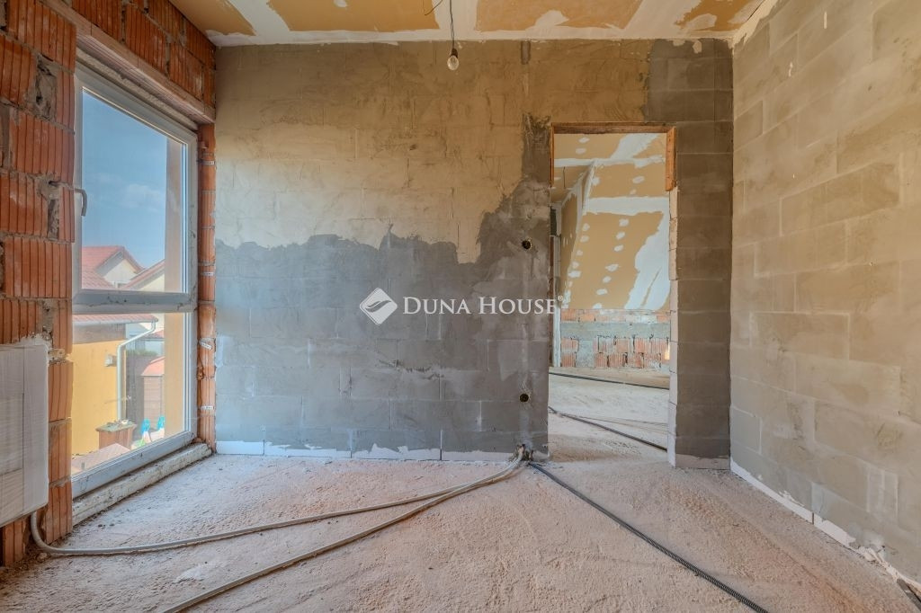 Az alsó szint 85 m2: tágas amerikai konyhás nappali+étkezőből , két szobából,egy fürdőszobából áll. A nappaliból közvetlen kijárat van a 15 m2-es fedett teraszra, valamint a kertbe. A földszinti tér központi eleme a majd 5,2 méter hosszú konyhapult. Az emeleti szint szerkezetkész állapotban van. A fenti 60 m2-es térben három szoba,és egy fürdőszoba alakítható ki.