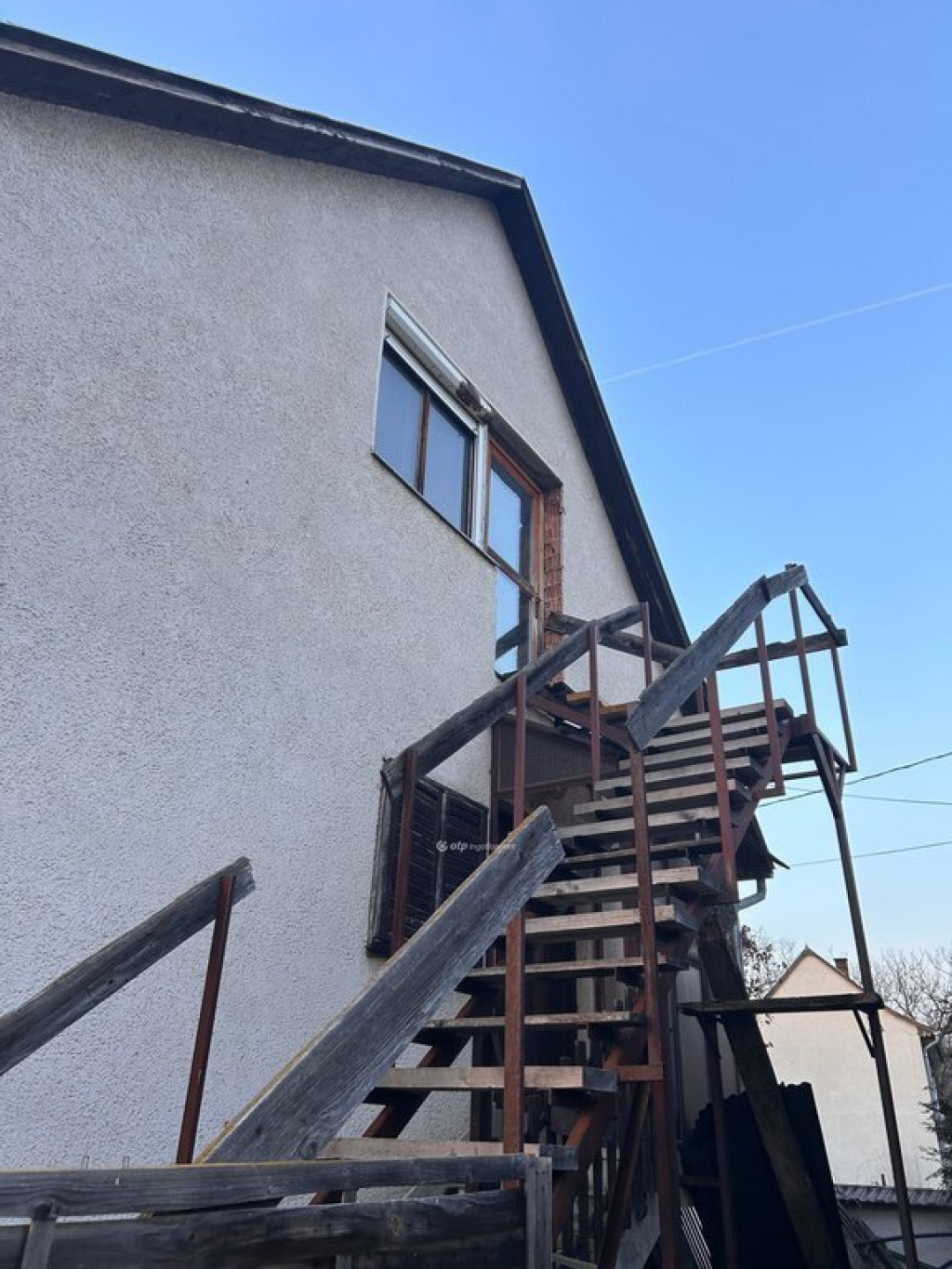 Göd-felső csendes részén, zöldövezetben eladó, egy 1988-ben épített ikerház fél felső szintje, 250 nm-es telekkel. A ház alapterülete: 56 nm. A házhoz tartozik egy külső feljáró, ezen keresztül közelíthető meg a felső szint, amely áll egy előtérből, kis konyhából, egy szobából, és egy fürdőből WC-vel egyben. Falazata tégla, a tető pala fedésű. A fűtésről egy gázcirkó gondoskodik, a hőleadást radiátorok biztosítják. Göd-Felső vasútállomás gyalog 8-10 perc, buszmegálló 200m. M2 autóút 5 perc, Tesco 5 perc. Az üresen álló 1/2 rész nem eladó. Külön is eladó, külső feljárat, külön álló.