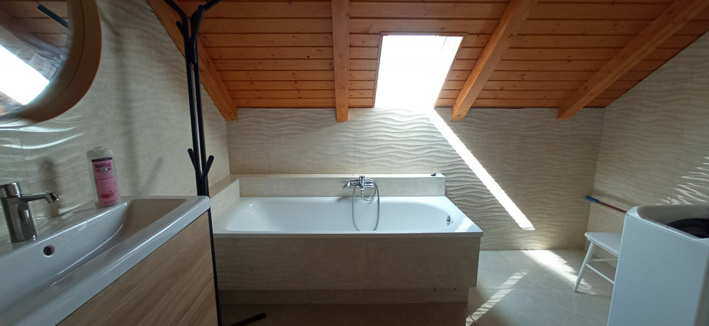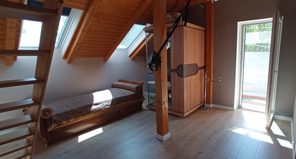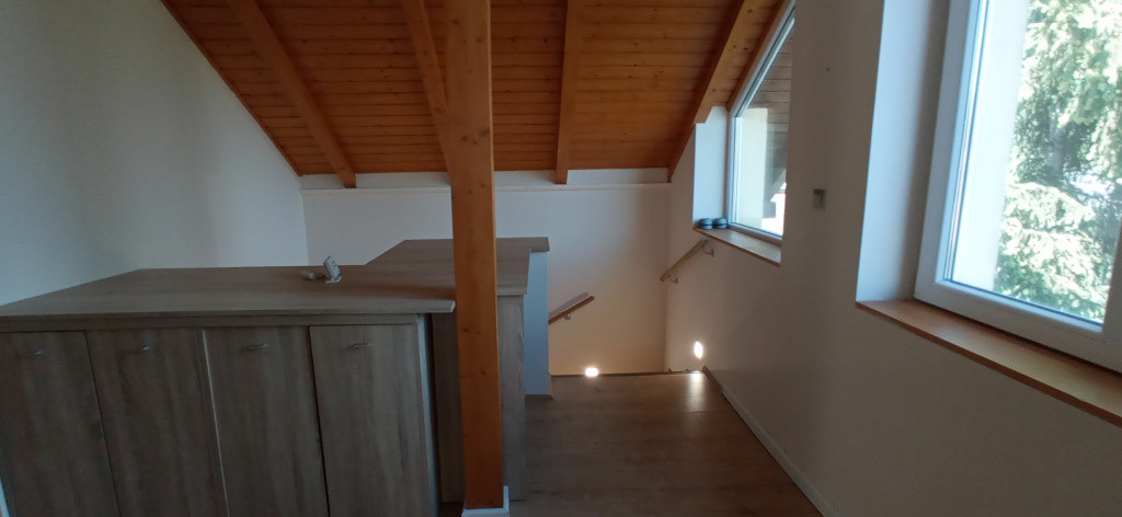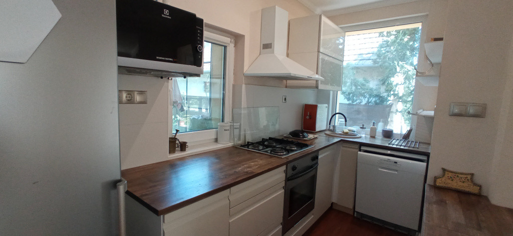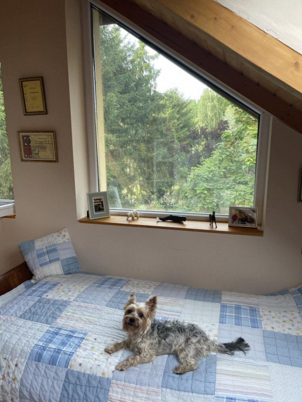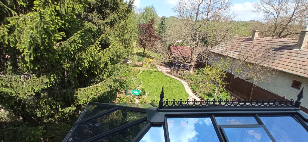 A házat pár éve átépítették és prémium anyagokkal felújították. A földszinten található egy hálószoba egy tusolós fürdőszoba. A konyha és a nappaliszoba egy légtérben található. A konyha mellett a másik irányból pedig egy 23 m2-es angol télikert található esőérzékelő tetőablakkal. Az emeletre megvilágított falépcsők vezetnek. A közlekedő ablakából rálátni a kertre és a környéken zöldellő természetre. A folyosóról nyílik két hálószoba egy nagy kádas fürdőszoba és egy gardróbhelyiség- az ablak mellett sminkasztallal.