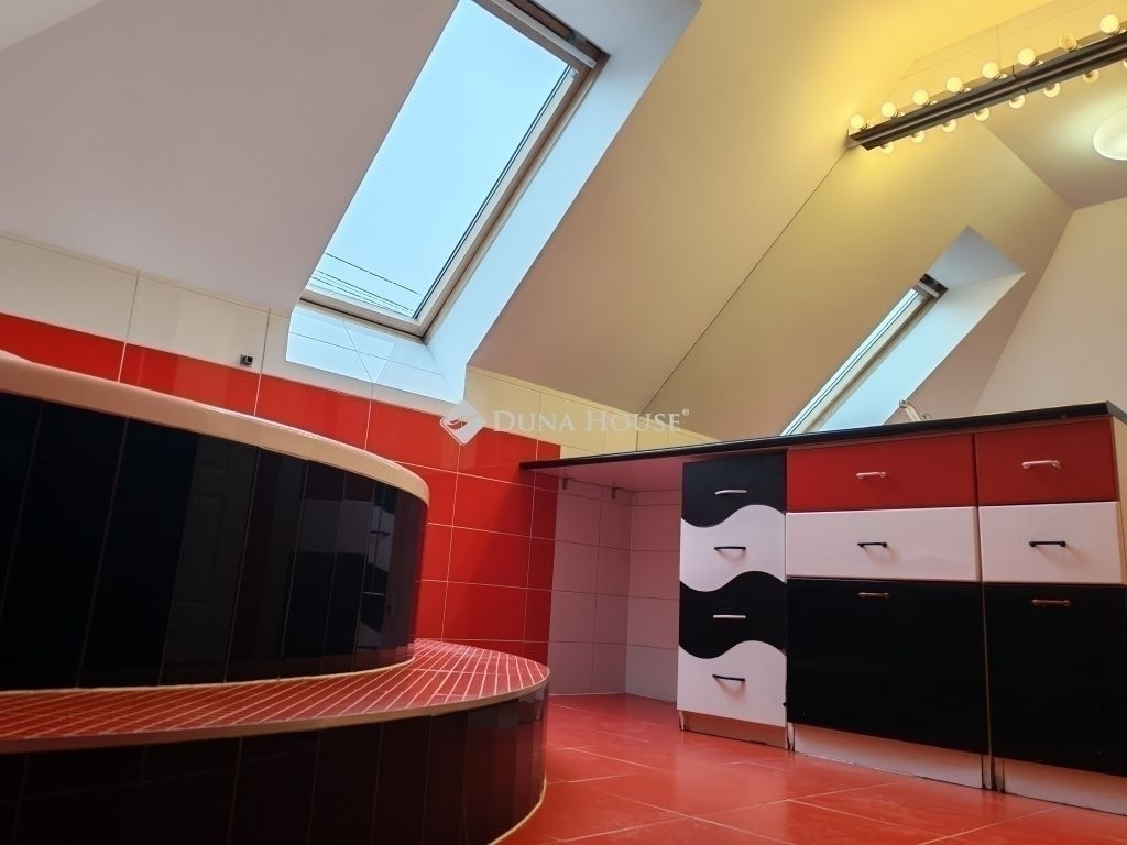 Összeköltözők vagy befektetők figyelmébe ajánljuk Gödöllőn, a Kastélykert szomszédságában ezt az 1980-as években épült, 805 m2-es telken épített nettó 148 m2 lakóterületű, bruttó 230 m2-es tégla épületet. Az ingatlan tehermentes, hitelezhető és a teljes vételár megfizetése után ráfordítás nélkül azonnal költözhető.Az épület különlegessége, hogy 2009-ben megemelték a tetőt, így az eredetileg szuterén + földszint kialakítású házat egy külön bejáratú, külön mérőórákkal felszerelt tetőtéri lakással bővítették.A földszint síkjához épített 56 m2-es teraszról lépcsőn jutunk fel a tetőtérbe, illetve a telek lejtését kihasználva, egy másik lépcső vezet le az alatta található 35 nm-es két állásos, elektromos garázskapuval felszerelt garázsba. A garázs mellett, közvetlen a ház alatt három, összesen 47 m2-nyi tárolásra alkalmas helyiség került kialakításra.2009-ben a ház 7 cm-es dryvit szigetelést és új fa thermo nyílászárókat is kapott.2025-ben teljesen felújították a földszinti lakóteret: a fűtésrendszert, részben a villany- és vízvezetékeket,illetve az összes burkolat, valamint falicsempe cseréje és egy új, biztonsági bejárati ajtó beépítése is megtörtént. A szinten előtér, 1 konyha-étkező új konyhabútorral és új, garanciális konyhagépekkel, 1 kamra, 2 szoba + 1 félszoba, továbbá 1 zuhanyzós fürdőszoba-Wc található. A klíma vezetékelése kiépített.A frissen festett tetőtér jó állapotú, helyiségei 1 amerikai konyha nappalival, 1 fürdőszoba káddal és épített zuhannyal, 1 külön Wc, 1 szoba és 1 félszoba. Az ablakok tetőtéri VELUX ablakok. A klímaberendezés kiépített.Elhelyezkedése kiváló, tömegközlekedési eszközök, óvoda, általános iskola sétatávolságban, a vasút és a HÉV kb. 800 méterre található. Keressenek bizalommal, hiszen ez az ingatlan lokációjának és kialakításának köszönhetően remek befektetés!