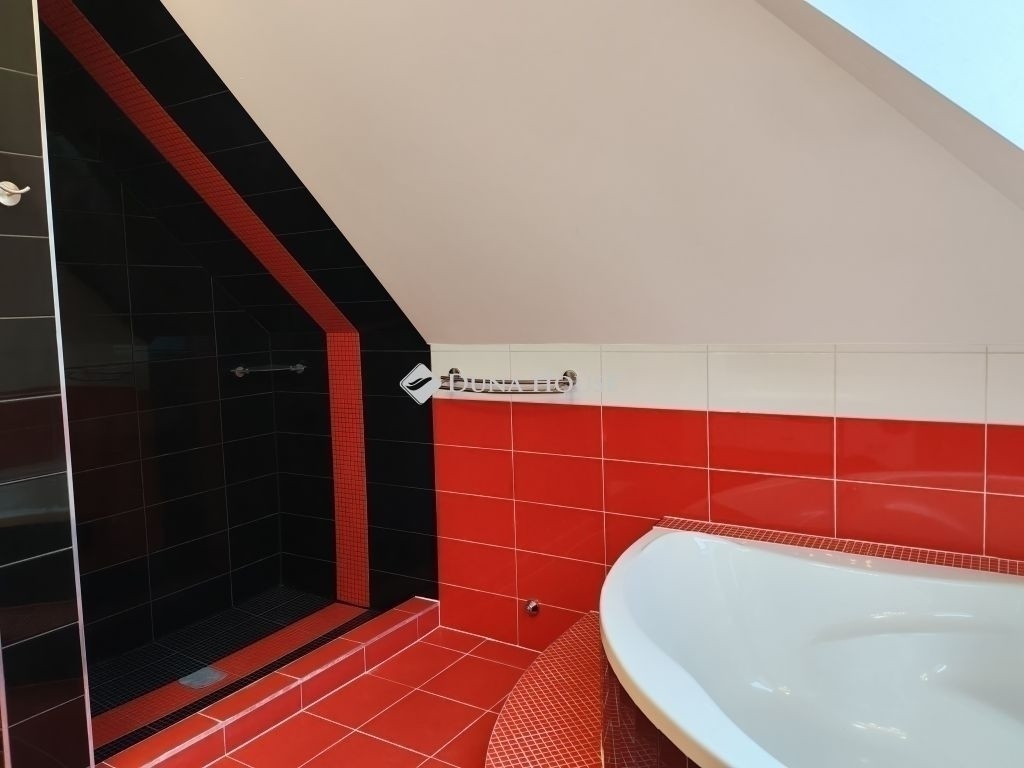 Összeköltözők vagy befektetők figyelmébe ajánljuk Gödöllőn, a Kastélykert szomszédságában ezt az 1980-as években épült, 805 m2-es telken épített nettó 148 m2 lakóterületű, bruttó 230 m2-es tégla épületet. Az ingatlan tehermentes, hitelezhető és a teljes vételár megfizetése után ráfordítás nélkül azonnal költözhető.Az épület különlegessége, hogy 2009-ben megemelték a tetőt, így az eredetileg szuterén + földszint kialakítású házat egy külön bejáratú, külön mérőórákkal felszerelt tetőtéri lakással bővítették.A földszint síkjához épített 56 m2-es teraszról lépcsőn jutunk fel a tetőtérbe, illetve a telek lejtését kihasználva, egy másik lépcső vezet le az alatta található 35 nm-es két állásos, elektromos garázskapuval felszerelt garázsba. A garázs mellett, közvetlen a ház alatt három, összesen 47 m2-nyi tárolásra alkalmas helyiség került kialakításra.2009-ben a ház 7 cm-es dryvit szigetelést és új fa thermo nyílászárókat is kapott.2025-ben teljesen felújították a földszinti lakóteret: a fűtésrendszert, részben a villany- és vízvezetékeket,illetve az összes burkolat, valamint falicsempe cseréje és egy új, biztonsági bejárati ajtó beépítése is megtörtént. A szinten előtér, 1 konyha-étkező új konyhabútorral és új, garanciális konyhagépekkel, 1 kamra, 2 szoba + 1 félszoba, továbbá 1 zuhanyzós fürdőszoba-Wc található. A klíma vezetékelése kiépített.A frissen festett tetőtér jó állapotú, helyiségei 1 amerikai konyha nappalival, 1 fürdőszoba káddal és épített zuhannyal, 1 külön Wc, 1 szoba és 1 félszoba. Az ablakok tetőtéri VELUX ablakok. A klímaberendezés kiépített.Elhelyezkedése kiváló, tömegközlekedési eszközök, óvoda, általános iskola sétatávolságban, a vasút és a HÉV kb. 800 méterre található. Keressenek bizalommal, hiszen ez az ingatlan lokációjának és kialakításának köszönhetően remek befektetés!