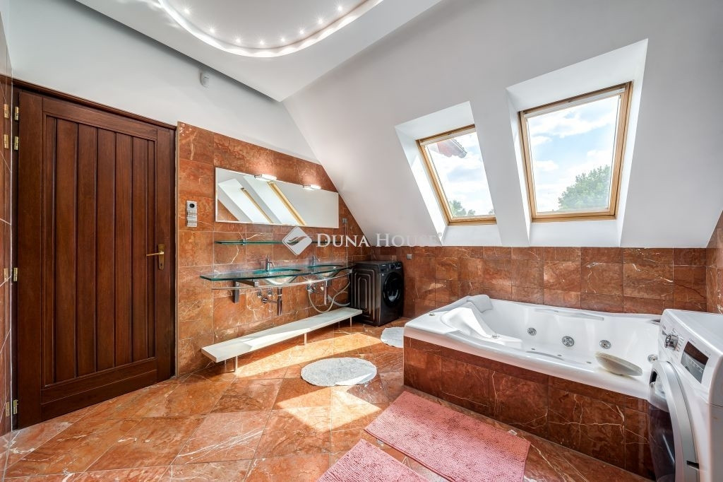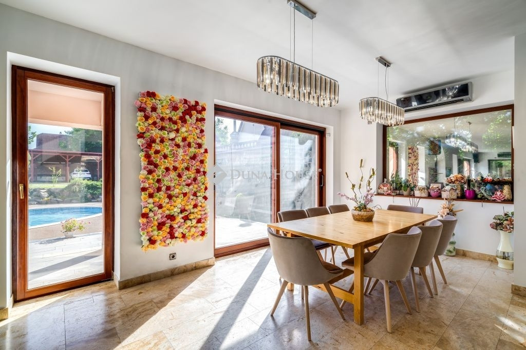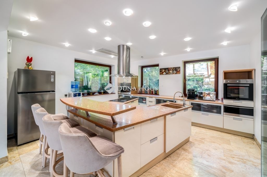 Gödöllői exkluzív luxusvilla saját tóval, medencével a természet ölelésébenLuxusra és nyugalomra vágyik egy varázslatos, természetközeli környezetben? Gödöllőn, most lehetősége nyílik arra, hogy Ön megtalálja álmai otthonát egy minden igényt kielégítő, egyedülálló villában. Az elegáns, 458 m²-es villaépület egy 2 472 m²-es, parkosított telken helyezkedik el, melynek éke a saját kerti tó és az úszómedence ebben az idilli környezetben minden nap nyaralásnak érződik. Saját parkjában ősfás liget és gondozott zöldfelületek garantálják a zavartalan pihenést, a prémium minőségű belső terek pedig a legmagasabb szintű kényelmet nyújtják.Főbb jellemzőkImpozáns villaépület: 458 m²-es luxusvilla tágas nappalival és több hálószobával; elegáns, prémium minőségű belső terek igényes kialakítással. Parkosított oázis: 2 472 m²-es, gondozott park saját kerti tóval és úszómedencével; az ősfás kert varázslatos hangulata privát, nyugodt menedéket teremt.Természet és luxus harmóniája: Az erdős környezet friss levegőt és madárcsicsergést garantál, miközben az ingatlan teljes körű közművesítettsége és modern felszereltsége gondoskodik a 21. századi kényelemről.Elit lokáció és elérhetőség: Gödöllő előkelő, csendes Fenyves városrészében található; Budapest belvárosa kb. 30 perc, a Liszt Ferenc nemzetközi repülőtér ~40 perc alatt elérhető, a főváros pezsgése így bármikor kényelmesen elérhető, miközben ez az otthon mindvégig a béke szigete marad.Mindennapok egy privát oázisbanKépzelje el, amint reggel madárcsicsergésre ébred. A friss levegő és a virágzó kert illata már a reggeli kávéját is különlegessé varázsolja ebben a mesés környezetben. Délután egy felfrissítő úszással hűsölhet saját medencéjében. A gondozott kertben tett séta pedig felér egy erdei kirándulással mindezt anélkül, hogy elhagyná otthonát. Bent minden a kifinomult ízlésről és a kényelemről szól. A tágas nappali hatalmas ablakai a kertre néznek, így a természet szépsége mindig az otthon része. Az elsőrangú anyagokból megálmodott belső terek egyszerre sugároznak eleganciát és otthonosságot a luxus minden apró részletben tetten érhető. Ez az ingatlan nem csupán a nyugalom szigete, hanem reprezentatív terei révén kiválóan alkalmas exkluzív baráti összejövetelek vagy elegáns fogadások megrendezésére is.Exkluzív lehetőség ÖnnekEz a varázslatos gödöllői luxusvilla nem csupán egy ingatlan, hanem a luxus és a természet tökéletes harmóniáját kínálja, amelyet Ön és családja minden nap élvezhet. Az ilyen egyedülálló lehetőség ritkán adódik a piacon, így érdemes időben cselekedni. Ne szalassza el a lehetőséget, hogy Öné legyen ez a páratlan oázis. Vegye fel velünk a kapcsolatot még ma, és tekintse meg személyesen ezt az álomotthont!