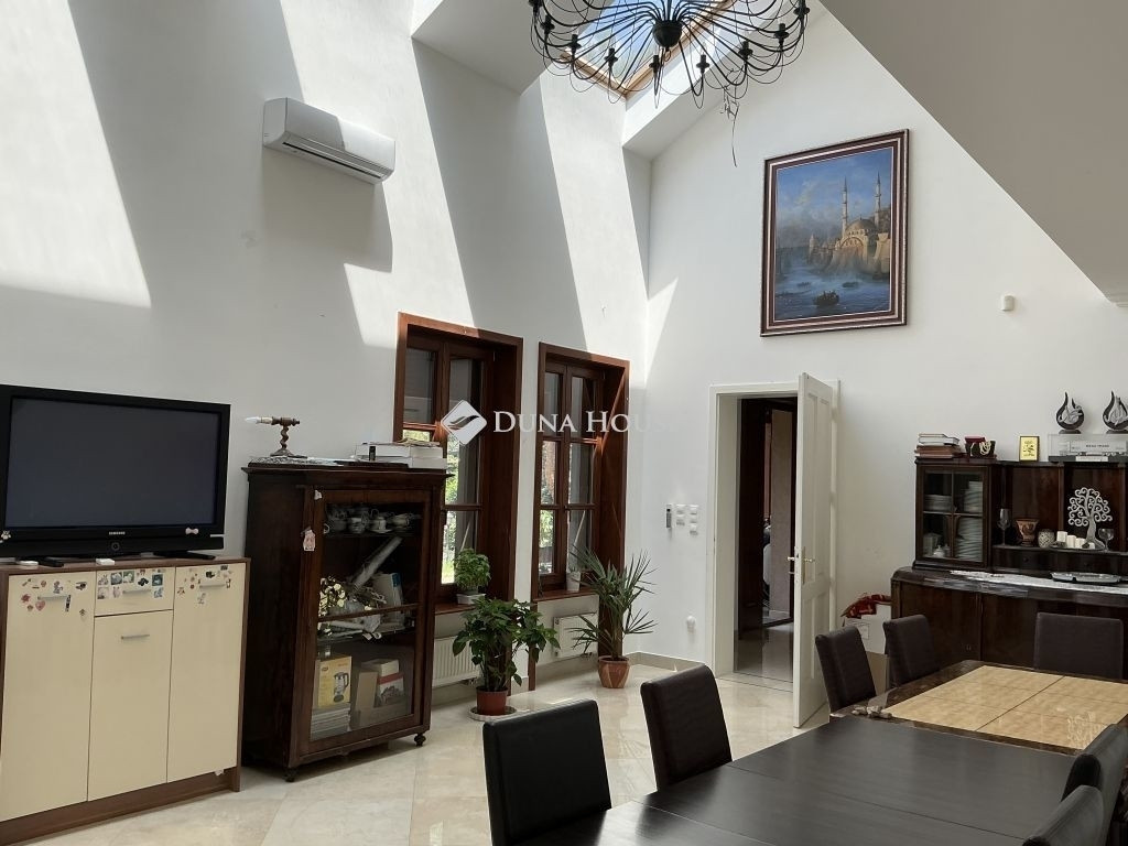 Eladó ez a lenyűgöző, háromszintes, exkluzív családi ház Gödöllő Haraszt részén, közvetlenül az Erzsébet-park közelében! Ez az egyedülálló ingatlan 2007-ben épült, modern és igényes kialakítással, melyet 2023-ban az emelet beépítésével és 2025-ben egy vadonatúj, elegáns konyhabútorral tettünk még kényelmesebbé.Az otthonban 7 hálószoba, 2 tágas nappali, 5 fürdőszoba és 2 külön mosdó biztosítanak minden kényelmet a család vagy a vendégek számára. A hat gardróbszoba akár szobaként is használható, így bőséges hely van a ruháknak és személyes tárgyaknak. A mozihelyiség, borospince, tárolók, konditerem, szaunaszoba mind egyedülálló lehetőséget kínálnak a kikapcsolódásra és az aktív életmódra.A ház kiváló hőszigetelésű, tégla és kő szerkezetű, cserépfedésű, modern francia építészeti stílusban. A nyílászárók borovi fenyőből készültek, három kazettás, dupla szigetelésűek és elektromos redőnnyel felszereltek, biztosítva a nyugalmat és a jó hőháztartást.A fűtést korszerű gázkazán és vegyestüzelésű kazán biztosítja, összesen 54 db, 20 kW-os egység révén hatékonyan és gazdaságosan. A 20 kW-os visszatáplálós napelemes rendszer pedig környezetbarát és költséghatékony energiaellátást nyújt.Biztonságát kamerarendszer és riasztórendszer védi, így nyugodtan élvezheti az otthon nyugalmát.Az ingatlan ideális összeköltözőknek, ipari tevékenység vagy akár szállodai üzemeltetés céljára is kiválóan alkalmas. Tágas, modern és exkluzív kialakításának köszönhetően számos lehetőséget rejt magában.Központi elhelyezkedése révén könnyen elérhető a város minden fontos pontja, mégis nyugalmas környezetben található. Ne hagyja ki ezt a páratlan lehetőséget! Keresse még ma, és tegye meg az első lépést álmai otthona vagy üzleti lehetőségei felé!Az ár magába foglalja:- wellness részleg, az edzőterem és a moziszoba teljes berendezését.Megbízó kérésére csak a személyesen történt megtekintés esetén van a teljes ingatlan megismerésére.