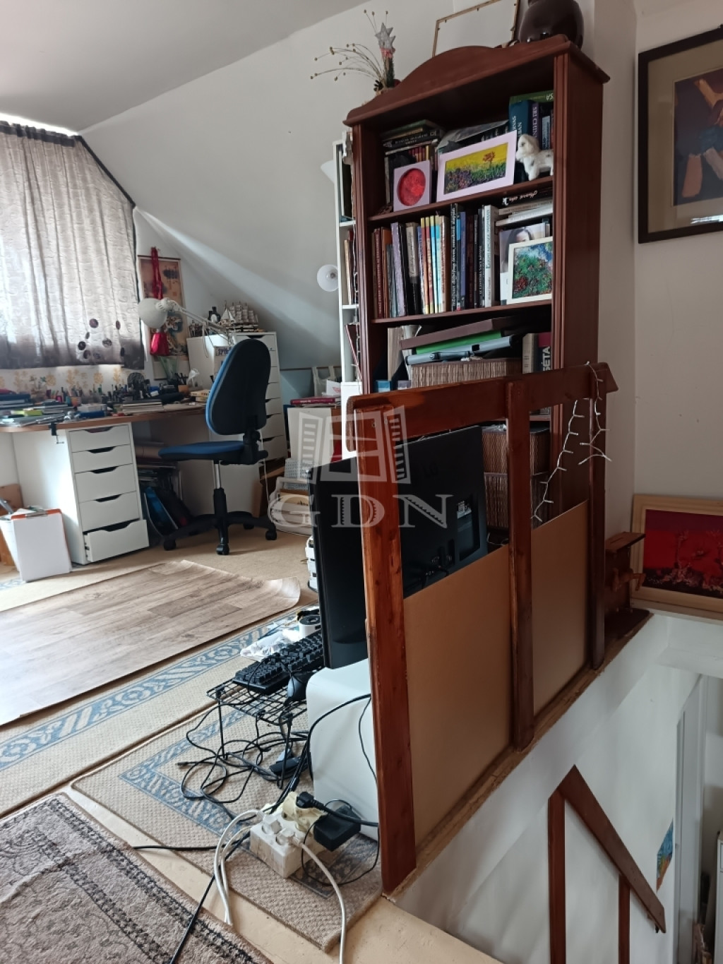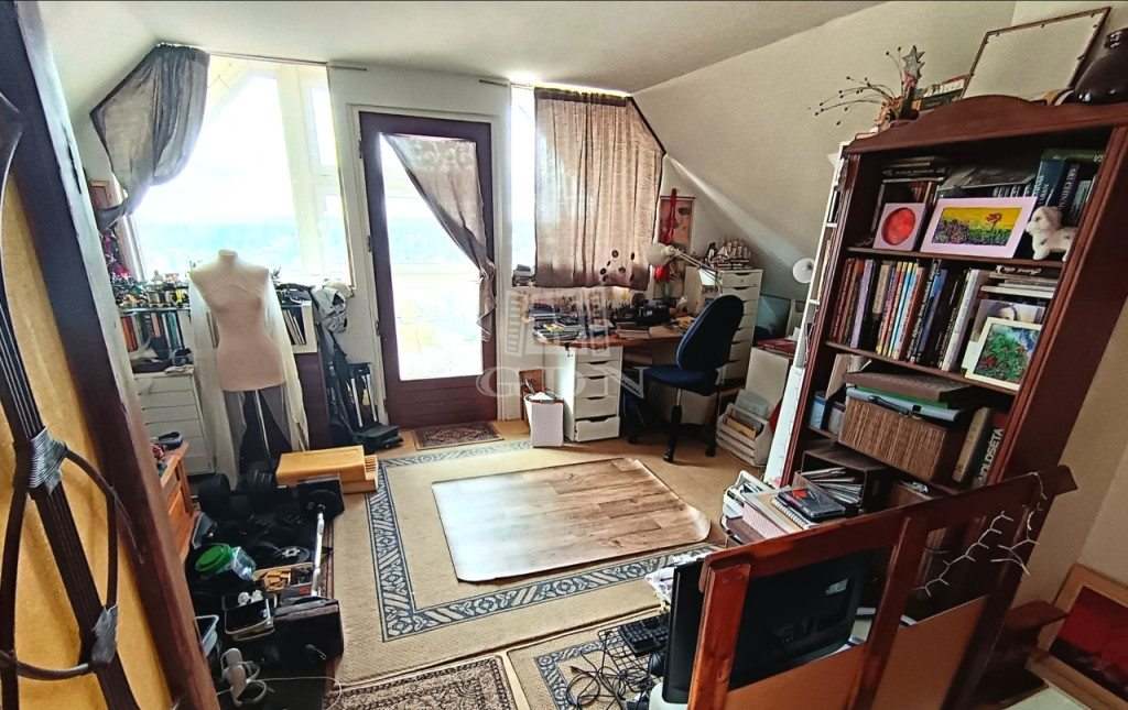A beépített tetőtér jelenleg egy helyiséget képez, amely szinte körbe panorámás. Ezt a részt egy válaszfallal 2 szobává alakíthatjuk, ahogy az eredeti terven is szerepelt. Ezáltal 3 szobássá téve az ingatlant.