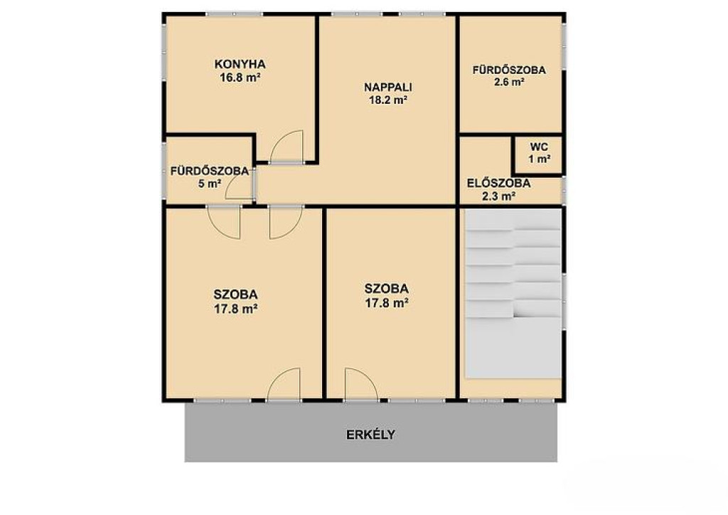 Az emelethez külső, különálló lépcső lett kialakítva, így kétgenerációs házként is funkcionálhat.