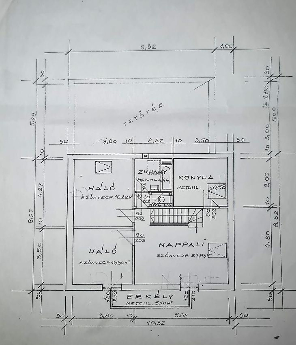 Emelet: 3 külön nyíló szoba, nappali, kádas fürdőszoba és külön mellékhelyiség.