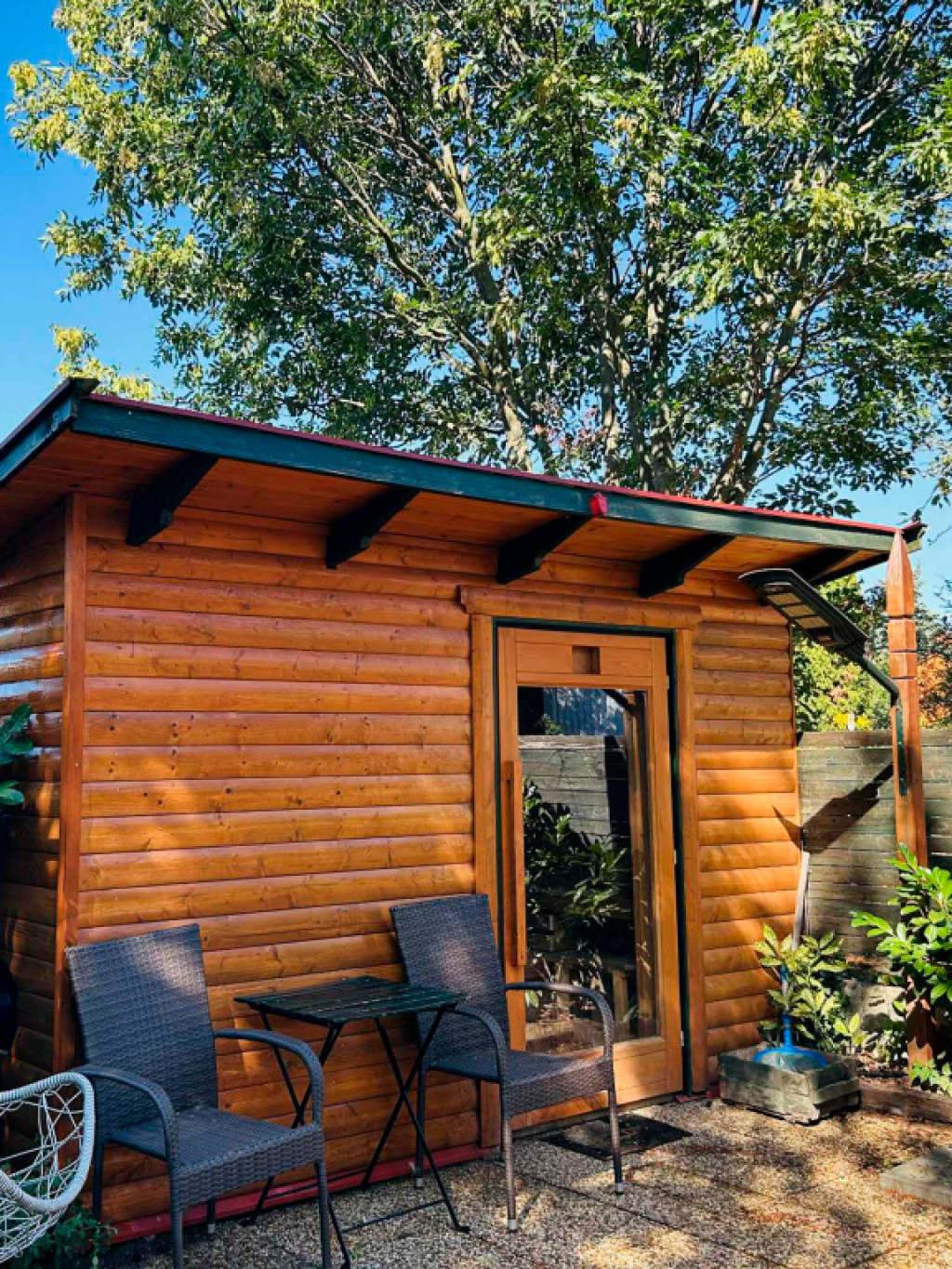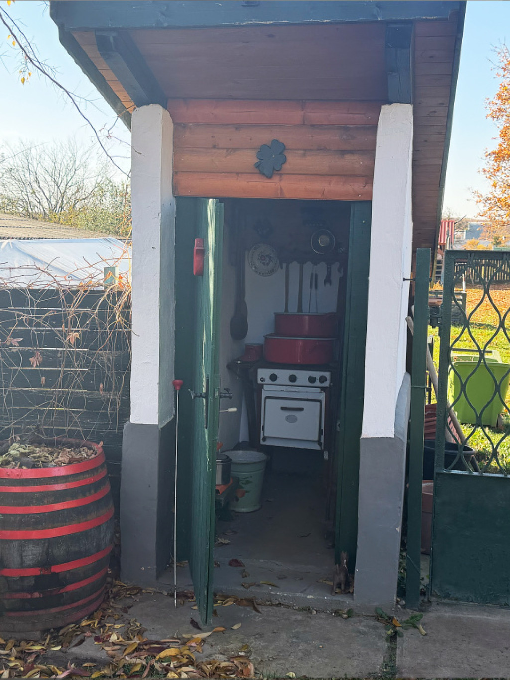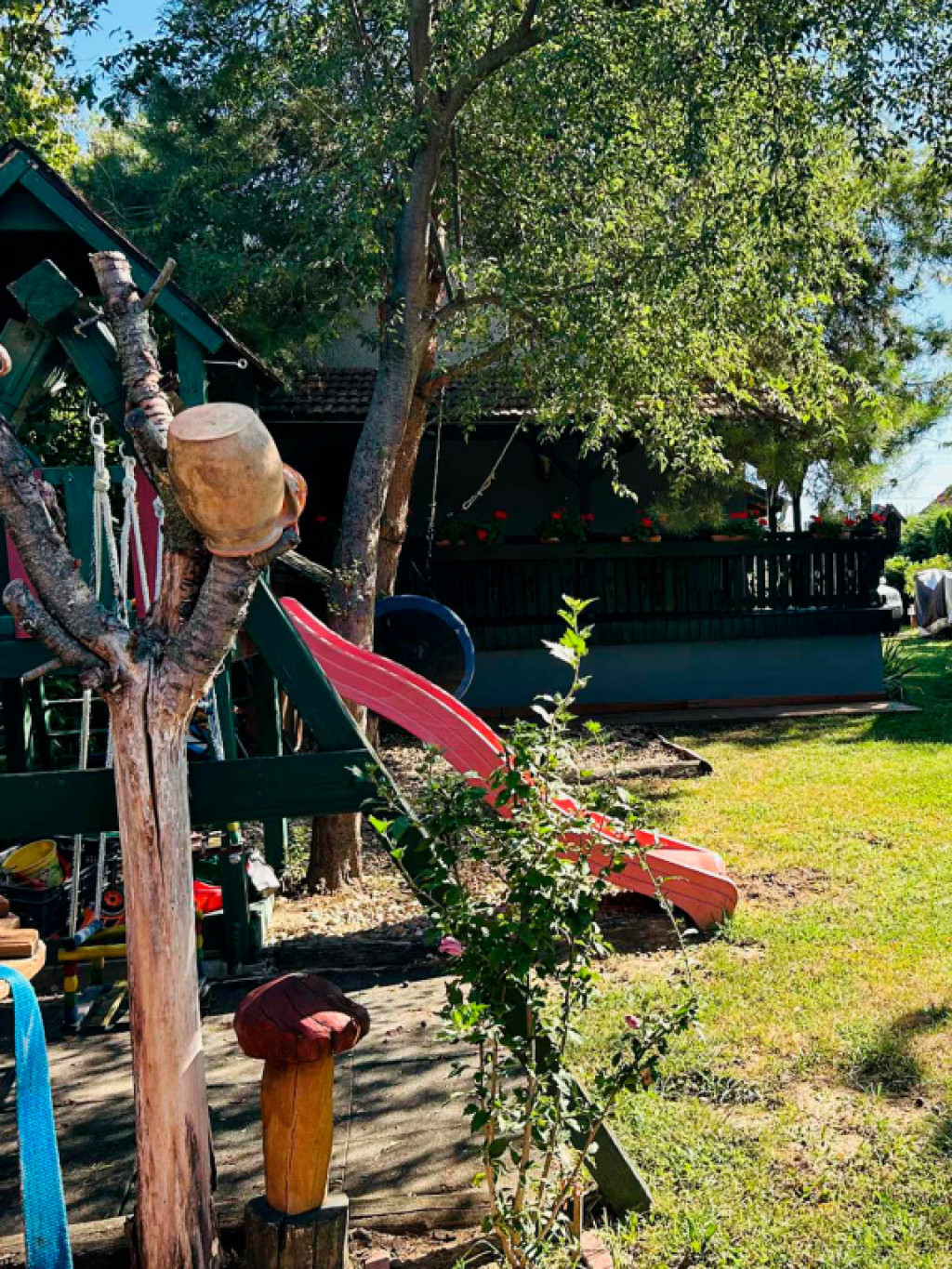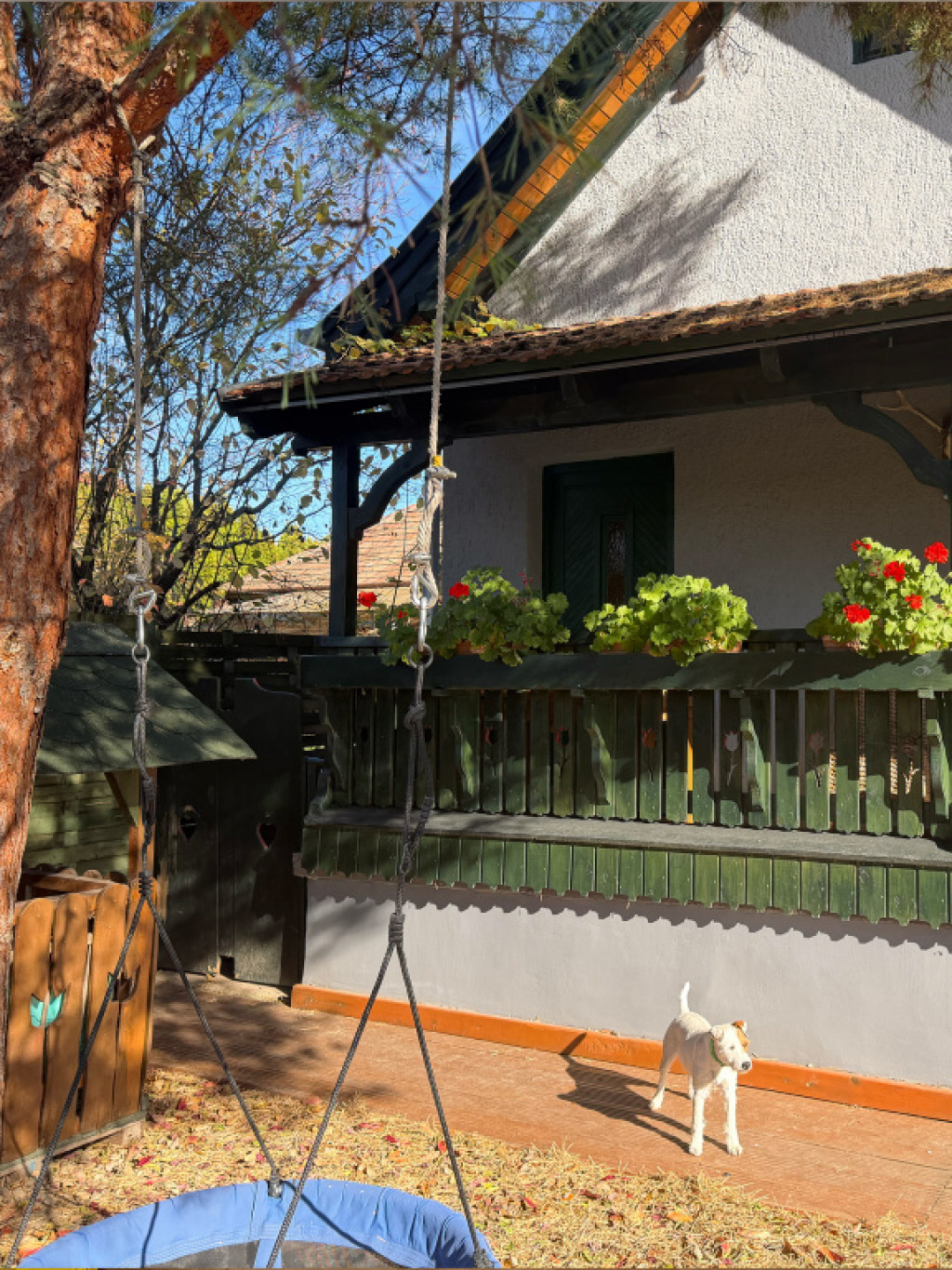 Az ingatlanhoz tartozik egy különálló, 45 m²-es, teljesen felújított téglaház (szoba, előtér + főzőfülke). A hangulatot tovább emeli a parkosított, rendezett udvar: szauna + fűthető dézsa kombó, árnyas kiülő, kültéri főzésre kialakított rész, valamint gyerekjátszótér.