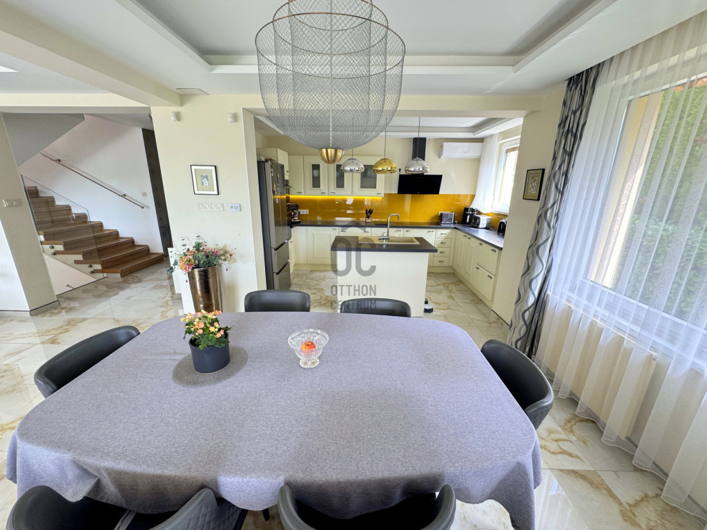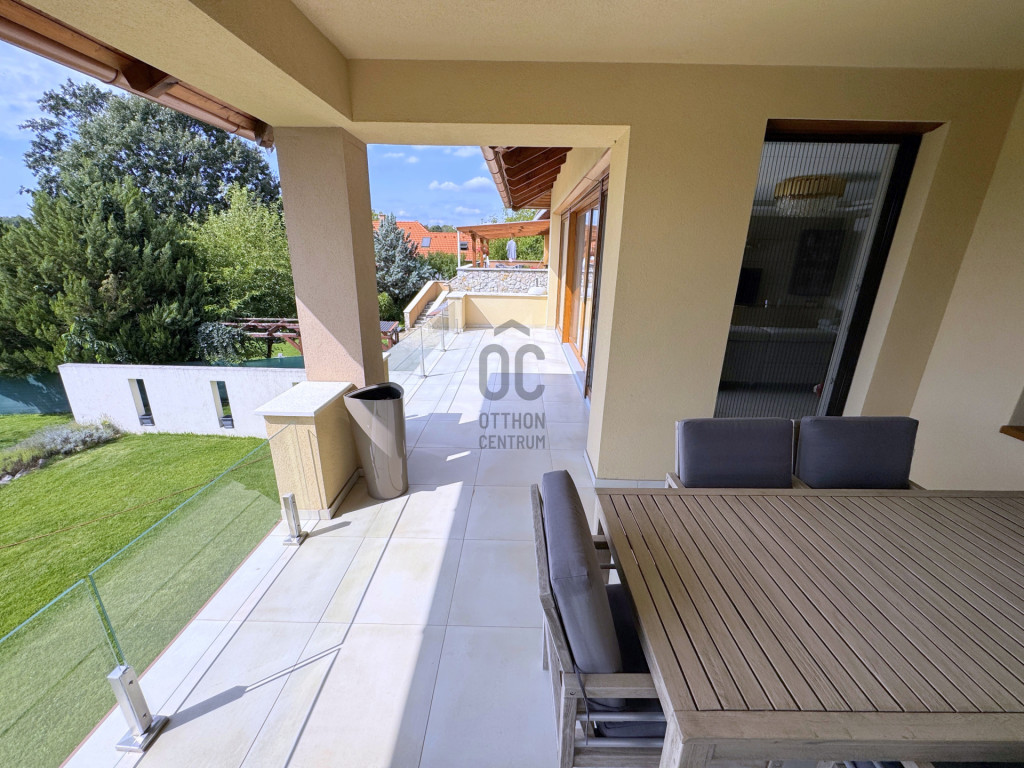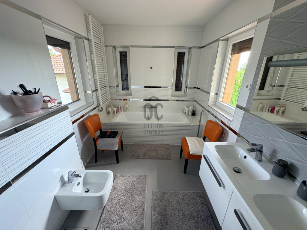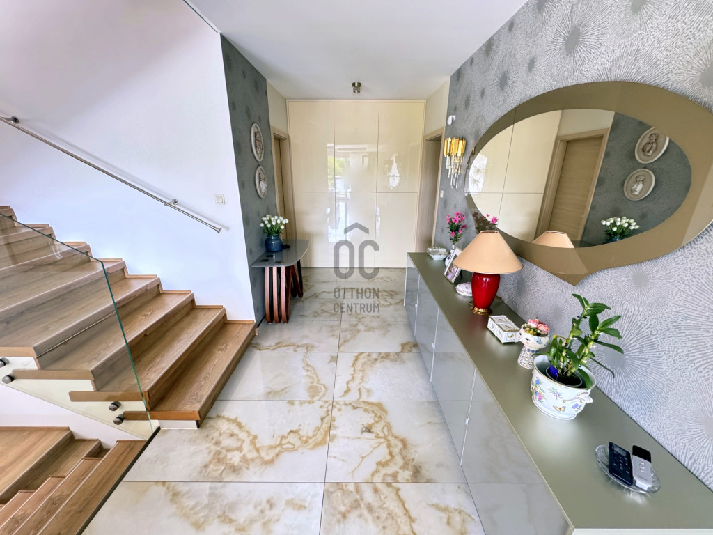 További extrák: fürdésre alkalmas kerti tó, élménymedence, minden ablak szúnyoghálóval és redőnnyel felszerelt, riasztó rendszer, kapucsengő, központi porszívó, rengeteg beépített gardrób szekrény, autómata öntöző rendszer stb.