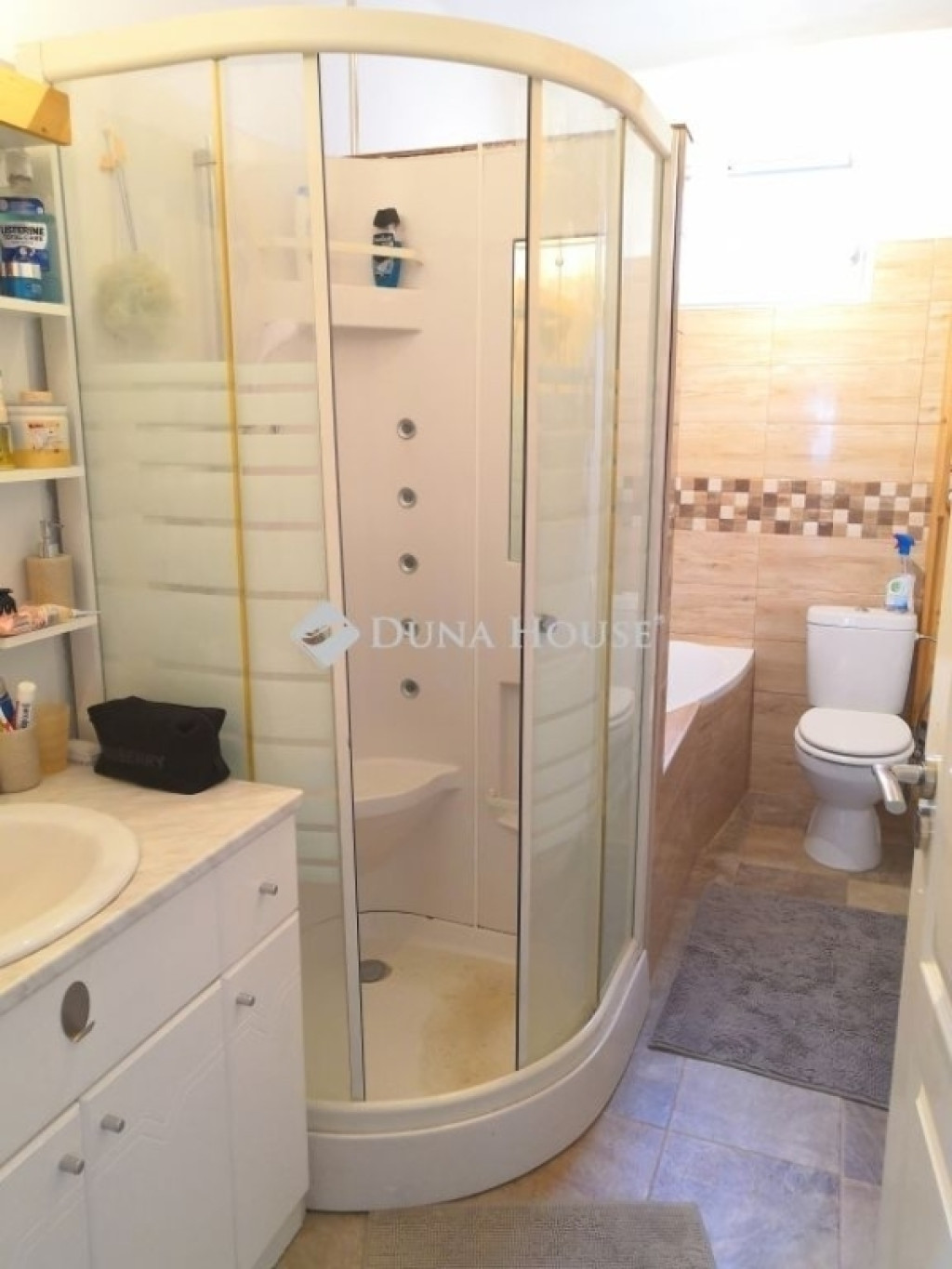 Káddal és zuhannyal felszerelt fürdőszoba + WC