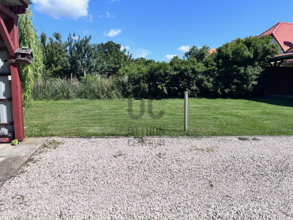 Az épülethez 810 négyzetméteres sík telek tartozik, melynek egy része szépen füvesített. egy része pedig a kocsibeállóhoz tartozó kavicsozott szakasz, amely az udvar hátsó részébe vezet. Itt két autónak van lehetőség parkolni de van egy garázs a házban is ami közvetlenül az utcáról megközelíthető.