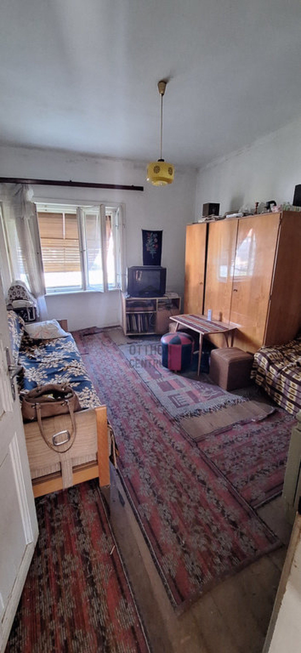 Elosztása két szoba, konyha, előszoba, kamra és egy napfényes terasz.