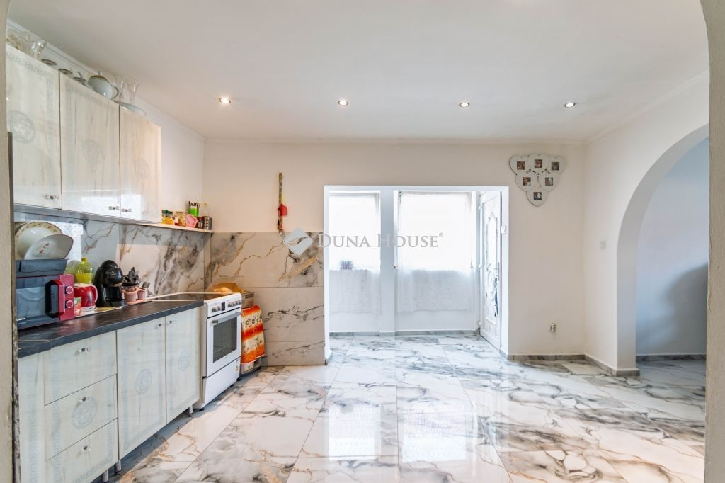 GYÁL, UTCAFRONTI IKERHÁZ, 5 SZOBA, 127m2Gyál kedvelt részén kínálunk eladásra egy, belső kétszintes, 5 szobás, 127m2-es, közepes állapotú, utcafronti ikerház felet, saját elszeparált kert résszel.LOKÁCIÓ: Gyál azoknak való, akik szeretnének egy nyugodt, biztonságos, zöld környezetben élni, miközben percek alatt elérhetik Budapestet. Ami mindössze néhány percre van autóval vagy tömegközlekedéssel! A várost a széles utcák, gondozott kertek családi házas környezet jellemzi. A város folyamatosan fejlődik, modernizálódik és újulnak meg a közterületei. Az ingatlantól néhány perc séta távolságra iskola, óvoda elérhető. A merőleges utcában BKV busz jár, amivel 30 perc alatt a Határ út elérhető (84E).ÉPÜLET:Az ingatlan átmenő forgalomtól mentes, aszfaltozott utcában helyezkedik el. A 661m2-es telekre egymás mögé épült fel az ikerház, mindkét ingatlan kerítéssel elszeparált egymástól és külön bejárattal rendelkeznek. Az ingatlan közepes állapotú, nyílászárói műanyagok. Az alsó szinten egy tágas ebédlő és konyha került kialakításra, 2 szoba, fürdő, wc, kamra. A felső részen 2+1 szoba, füdő+wc került kialakításra. A házhoz az épület háta mögött egy elszeparált, saját, 70m2-es udvar tartozik.Az ingatlanban 3X20A-es áramerősség, továbbá, H tarifás villanyóra van! Fűtését jelenleg egy fatüzelésű kazán biztosítja, hő leadói radiátorok. Előzőleg gáz cirkó fűtése volt ami, könnyen visszaállítható vagy, akár hőszivattyú is telepíthető az ingatlanba.Az ikerház, jogilag társasházként van nyilvántartva! Önálló HRSZ.-számmal rendelkezik!PER, TEHER ÉS IGÉNY MENTES!Az ingatlanra banki hitel felvehető!