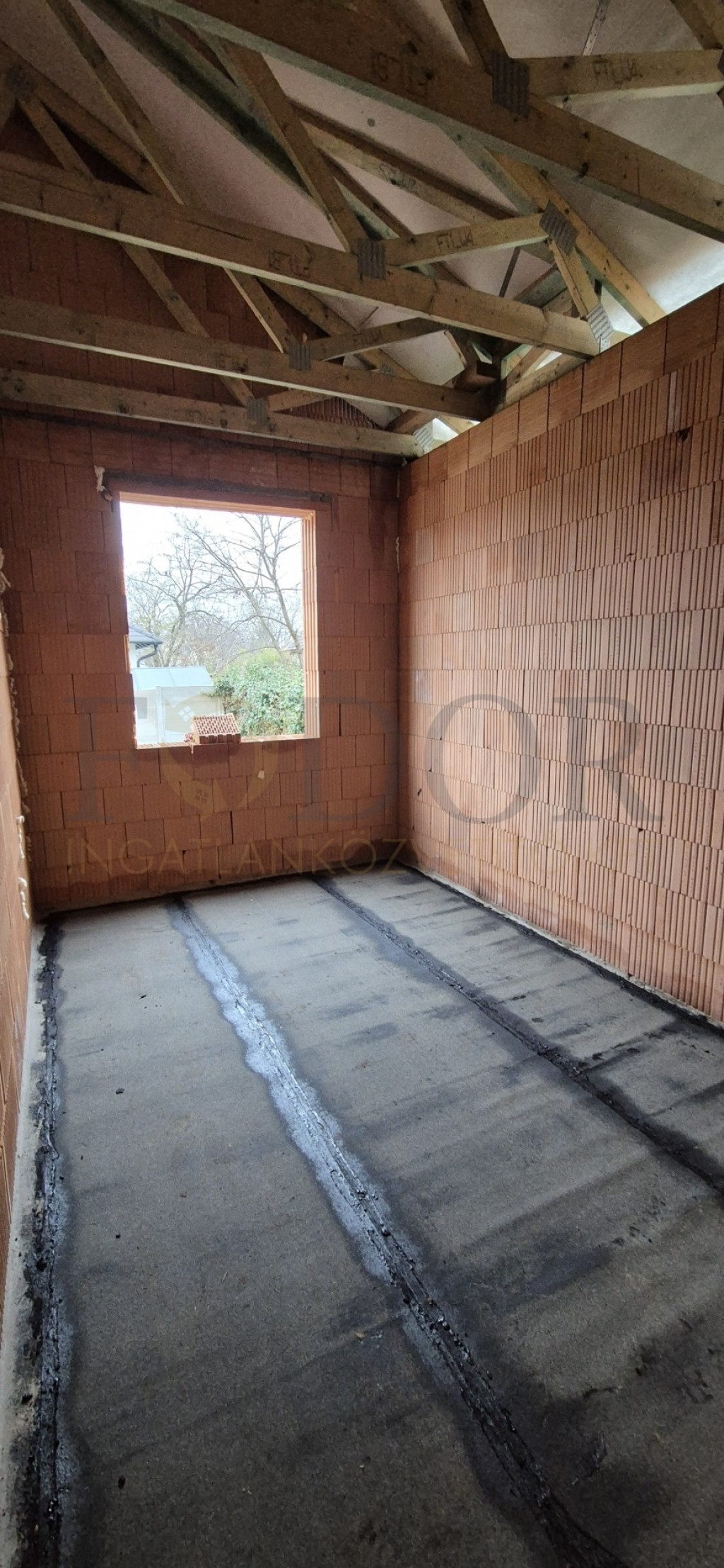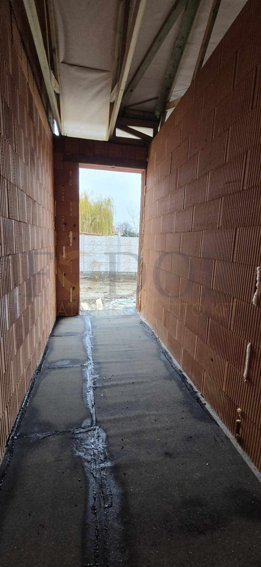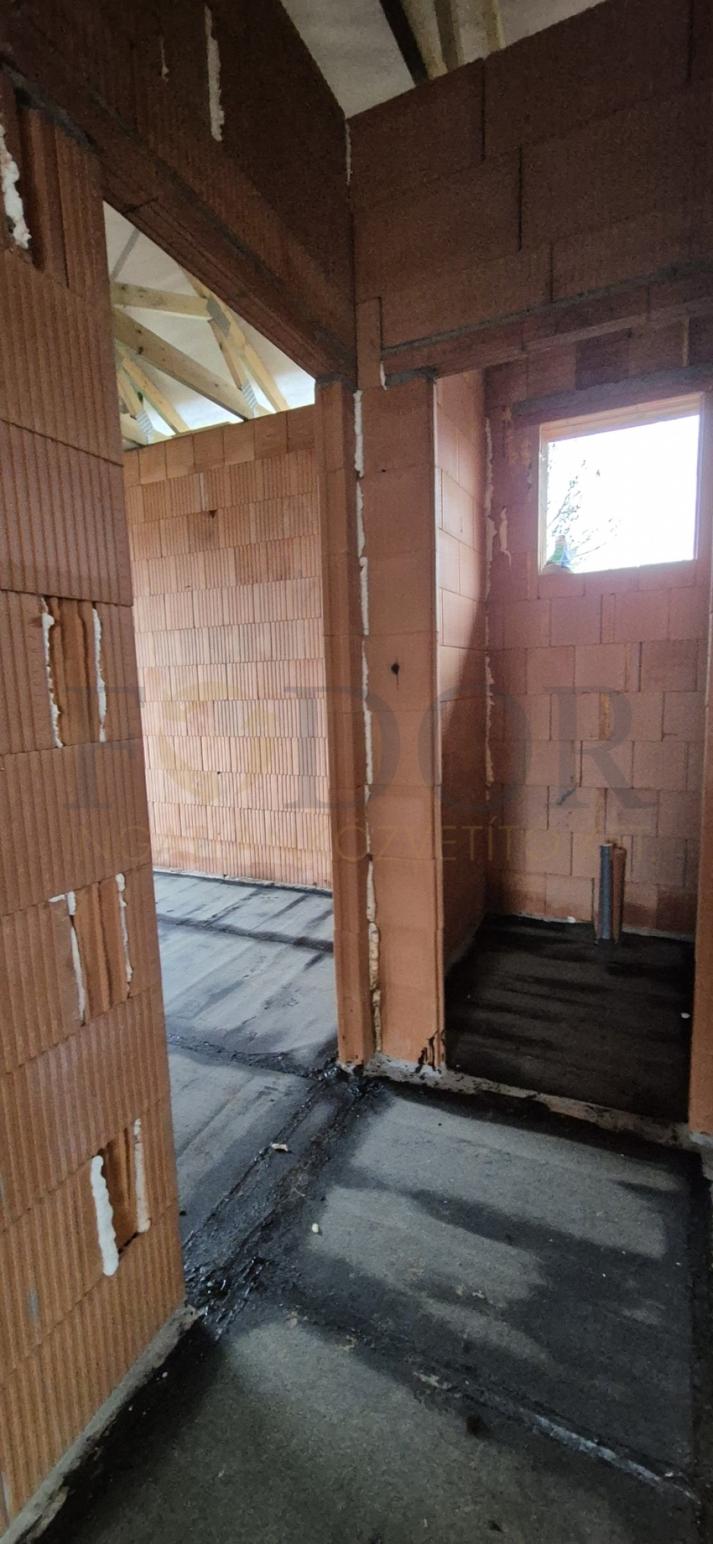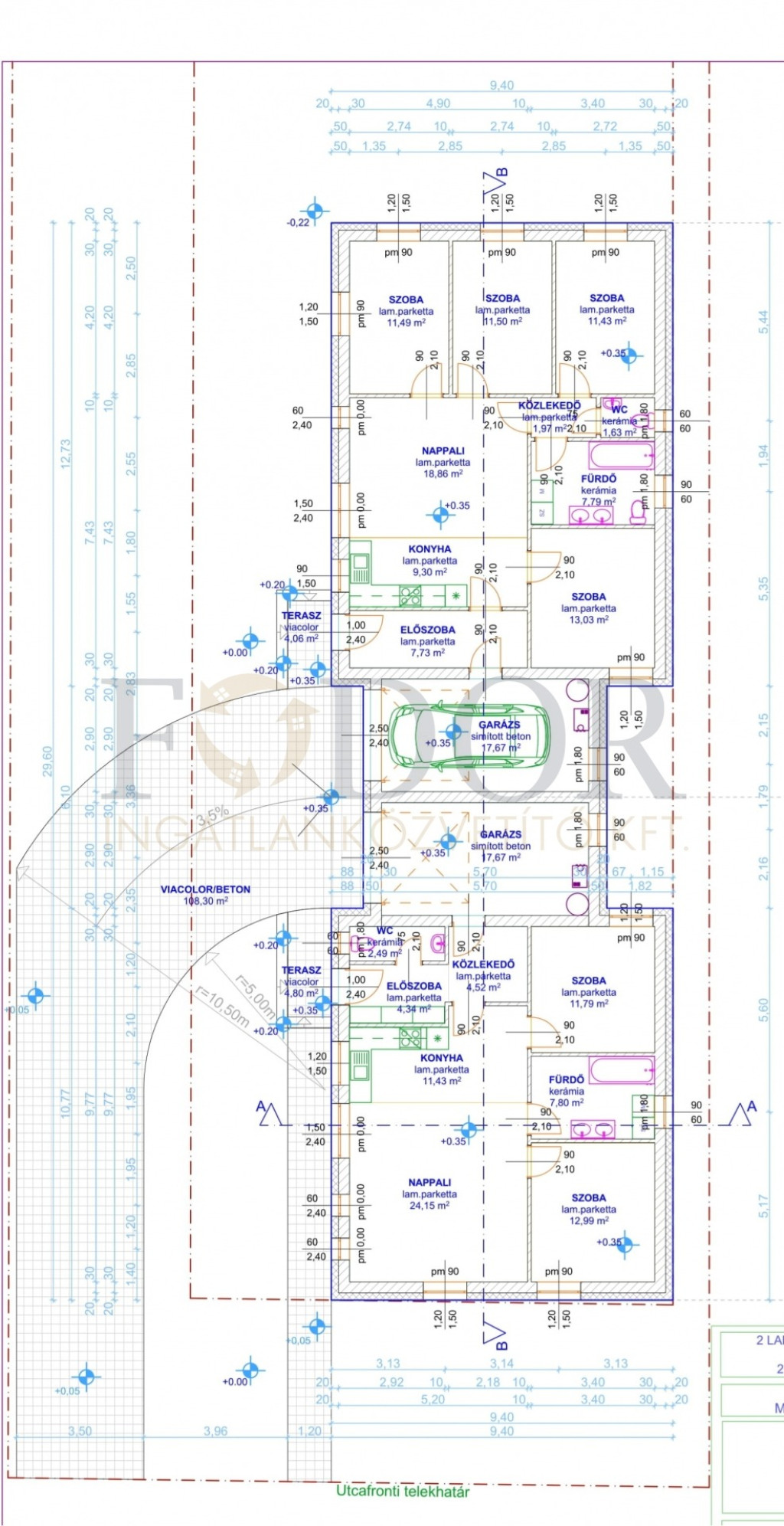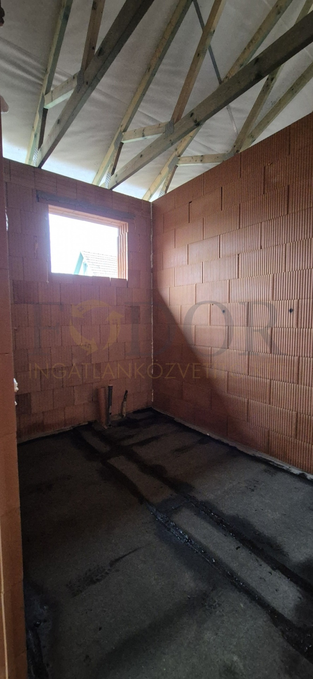 A hátsó, nagyobb alapterületű ingatlan 114,9 millió forintért vásárolható meg. Az ingatlan nettó lakóterülete 94,73 négyzetméter, szintén rendelkezik egy 17,67 négyzetméteres garázzsal és egy 4,06 négyzetméteres terasszal. A 582 négyzetméteres telken álló ház ideális választás nagyobb családok számára: négy kényelmes hálószoba és egy tágas nappali biztosítja a kényelmet. Különálló és egybenyíló fürdőszobák, illetve WC-k is megtalálhatók, így a napi rutin még nagyobb család esetén is kényelmesen szervezhető. A fűtés itt is hőszivattyúval és padlófűtéssel történik, a riasztó előkészítése megtörtént, a parkolás ingyenes az utcán. A tetőtér ebben az épületben sem beépíthető.
