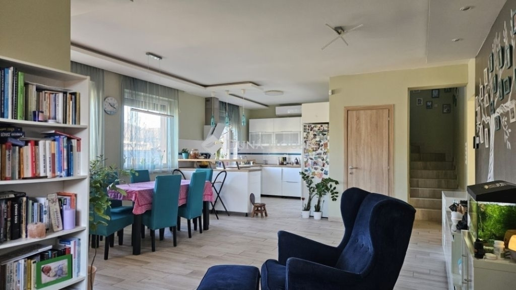 A nappali rendkívül világos, kellemes életteret biztosít.