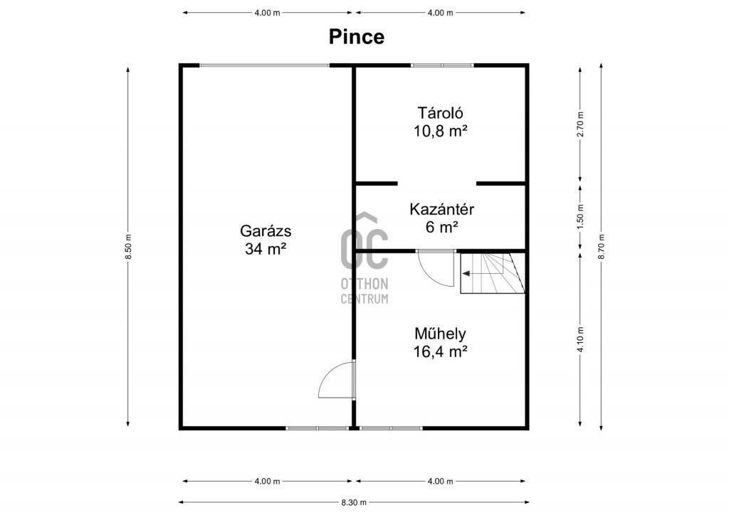 Pince szint autóbeállóval, kazánházzal, külön tárolókkal
