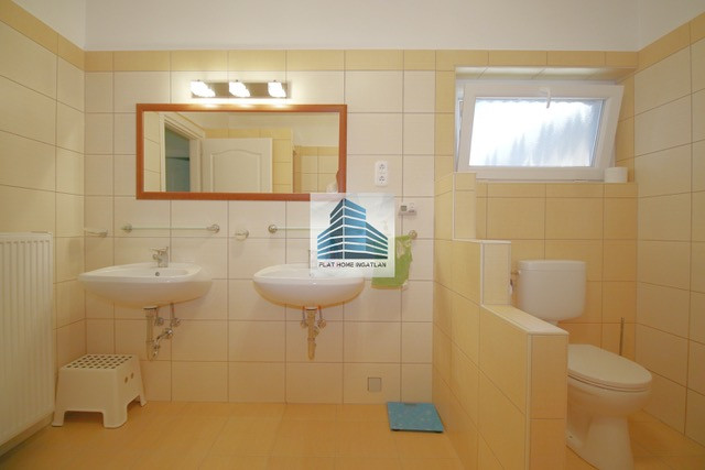 Elosztása szerint: előtér 3.3 m2, nappali- konyha- étkező 23.1+16.74+8.1 m2, terasz 22.48 m2, mosókonyha+ Wc 4.28 m2, 3 szoba 9.72-10.8-12.9 m2, fürdőszoba+ Wc 9.46 m2, közlekedő 9.88 m2.