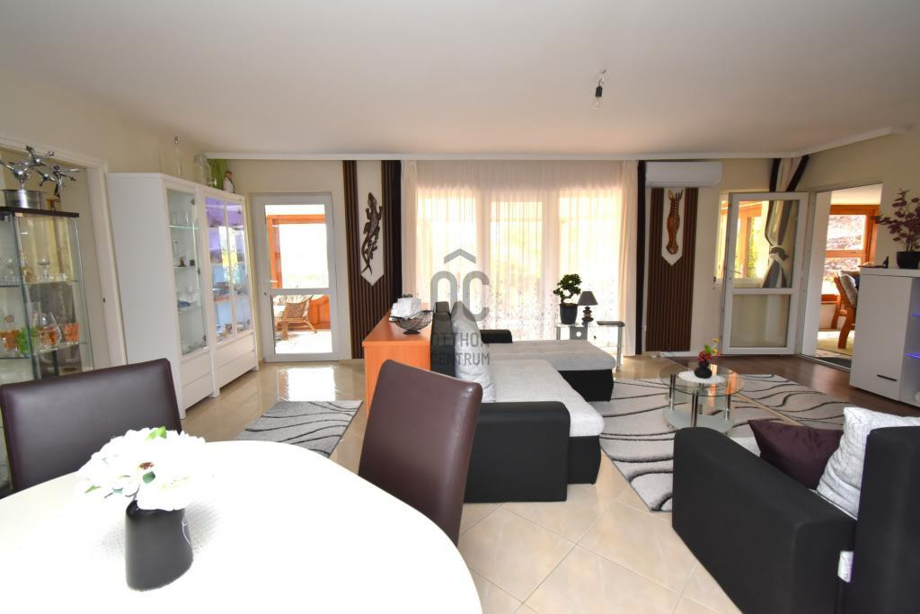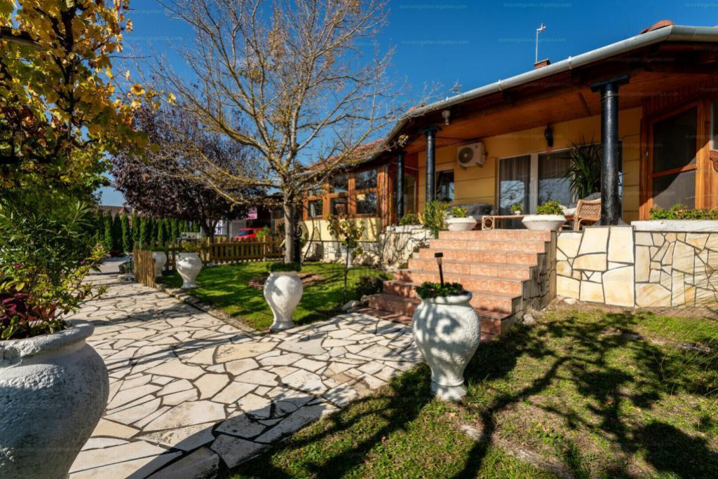 A 2341 m²-es, összközműves telken álló, 221 m² hasznos alapterületű lakóingatlan déli tájolásának köszönhetően egész nap fényárban úszik.