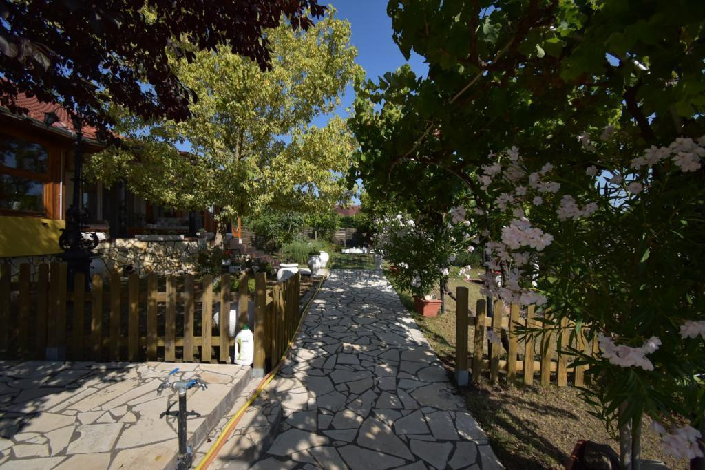 Az udvaron több gépkocsi számára kialakított parkolóhely áll rendelkezésre, a fúrt kút pedig megkönnyíti a kert gondozását.