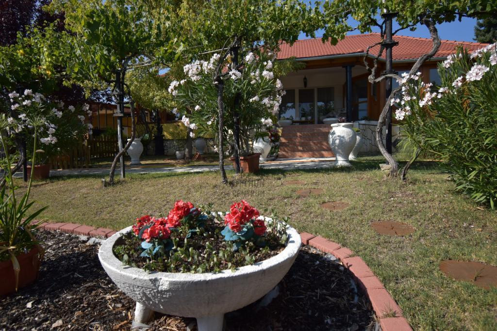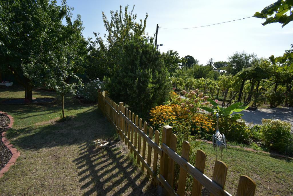 A kert szépsége gondos kezek munkáját dicséri, sok virágzó növény és számos gyümölcsfa is telepítésre került a magaságyásokkal együtt.