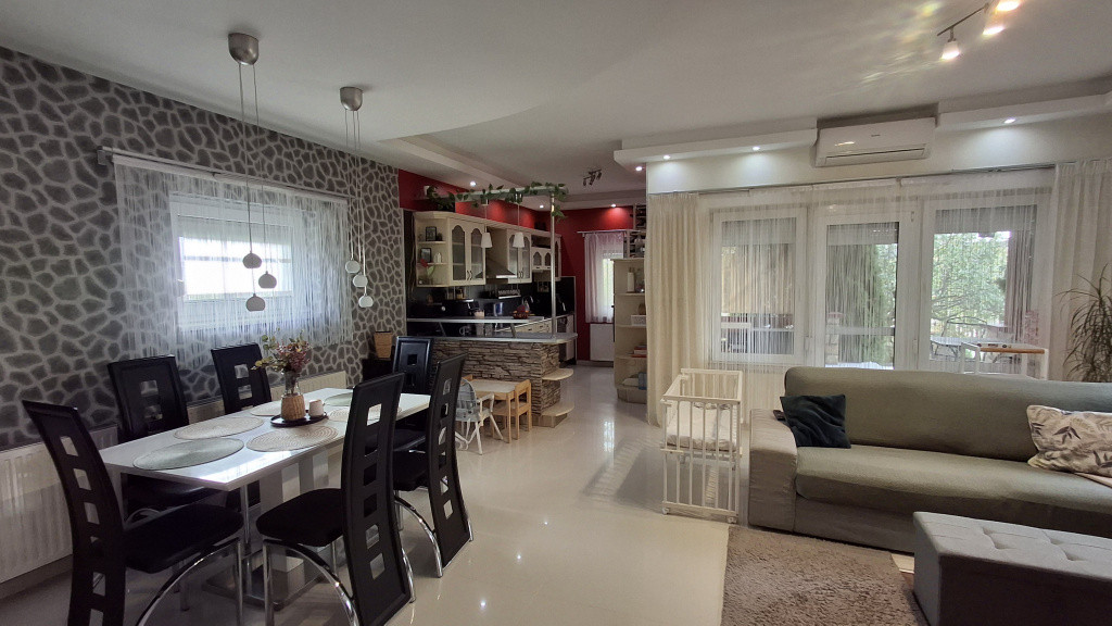 A szépen karbantartott családi ház 25Ah áramellátással, cirkófűtéssel ,két darab hűtő-fűtő klímával kis rezsi mellett üzemeltethető.