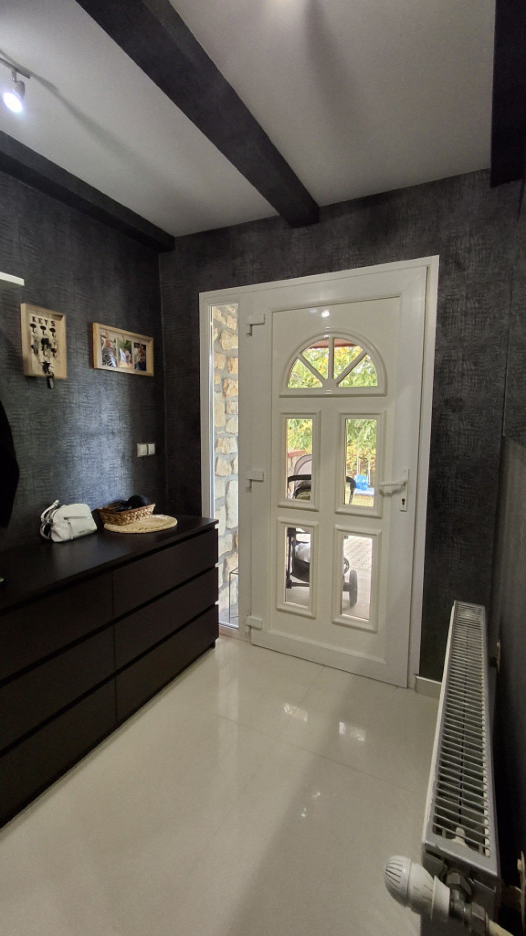 A 760 m2 szép , parkosított területen játszótér, fedett kerti bográcsozó, sok gyümölcsfa hívogat befelé az utcáról. Az igényes terméskövel burkolt , Ytong téglából 2005-ben épült földszintes ingatlan elosztása :