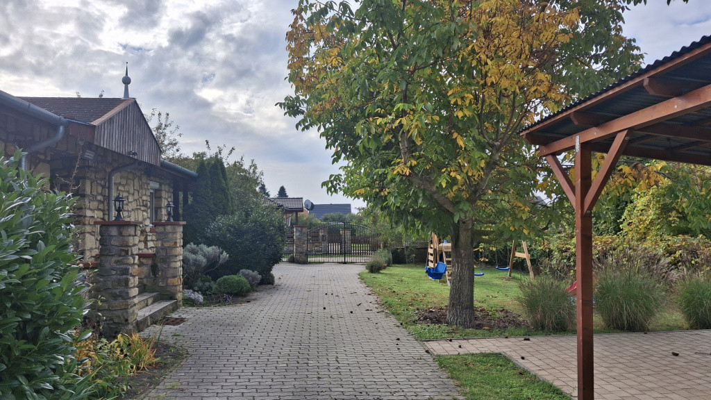 Riasztó, elketromos kapuk, műanyag nyílászárók, redőnyök, szúnyoghálók, hangulatvilágítások, térkövezett udvar mind az új lakó kényelmét, otthonos érzését erősítik.