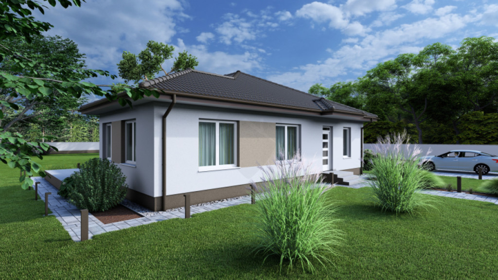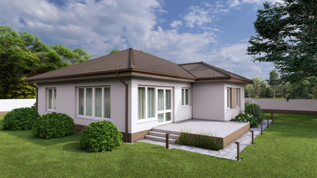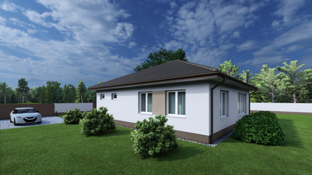 A praktikusan tervezett házban a szobákon kívül tágas és napfényes amerikai konyhás nappali, gardrób, kamra, szélfogó, közlekedő, fürdőszoba+wc, háztartási helyiség és egy külön mellékhelyiség is kialakításra kerül.