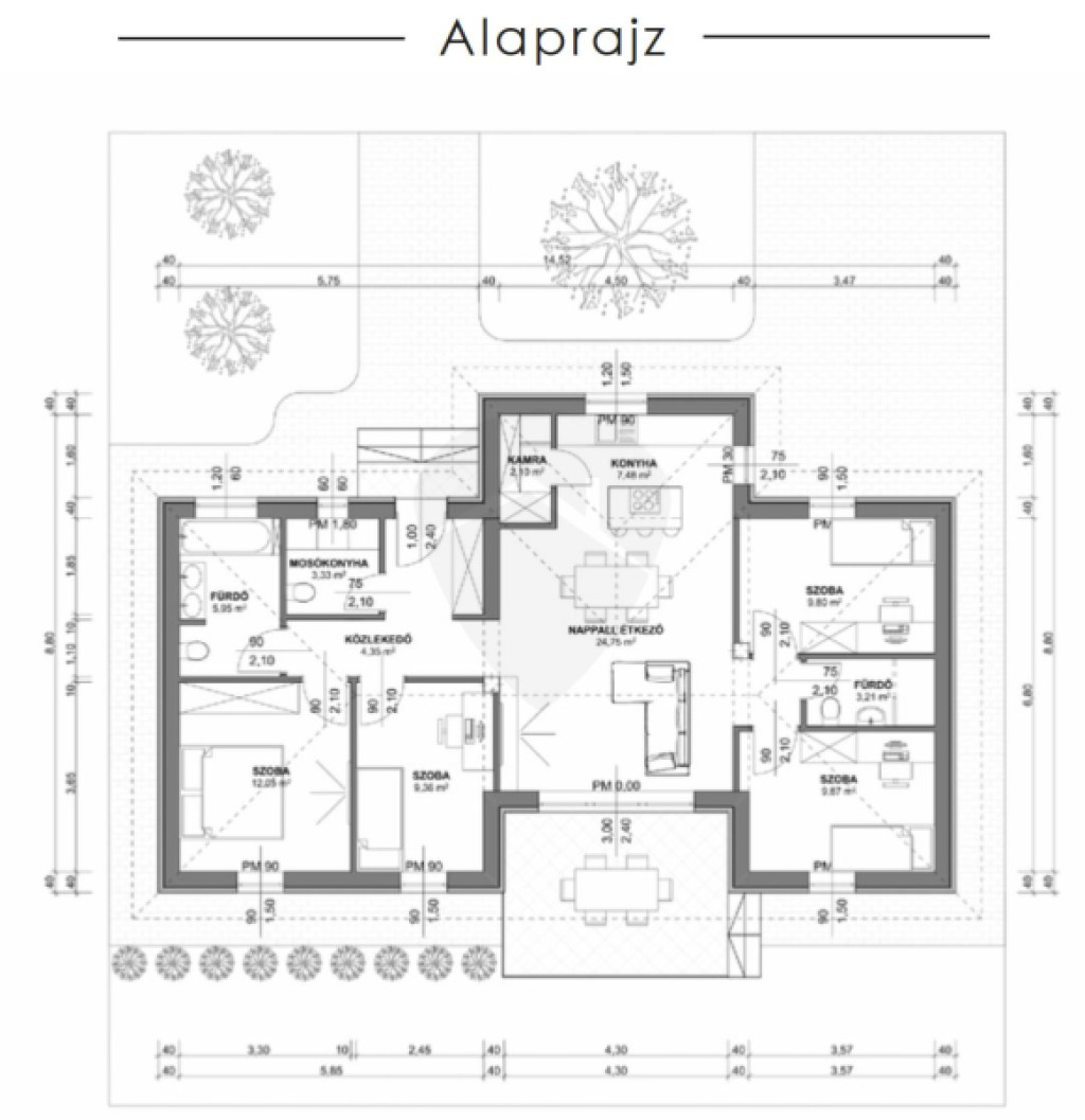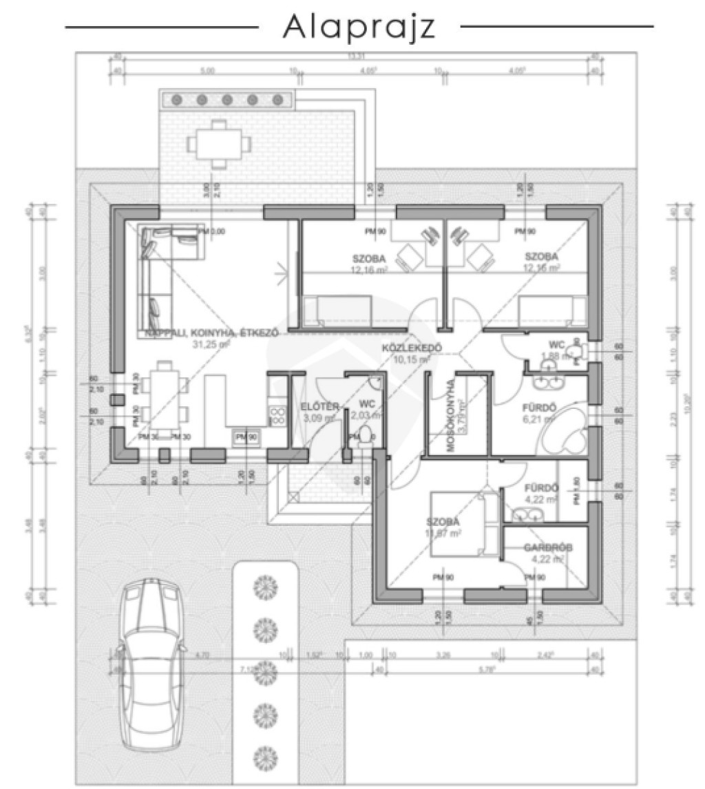 A jelenlegi árajánlatban az otthon melegéről gáz-cirkó kazán gondoskodik, padlófűtéses hőleadással, de a fűtésrendszer is az építtető igényei alapján módosítható!