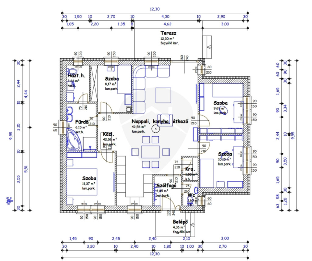 A nappali + három szobával(vagy akár több szobával) rendelkező ingatlan alapterülete nettó 100 m2, mely igény szerint módosítható.