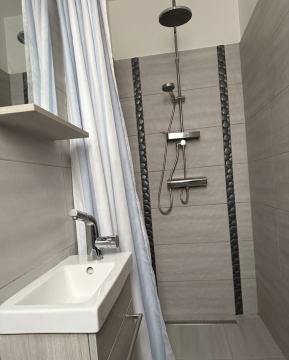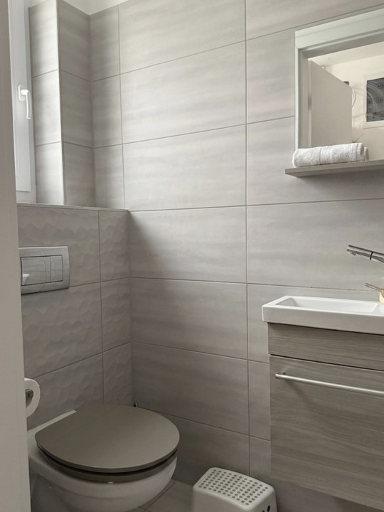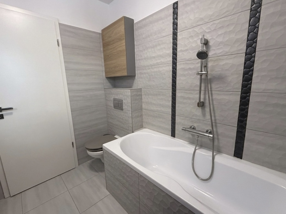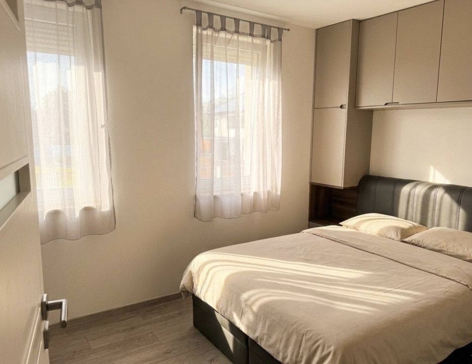 • Komfort: Duplakomfortos (lenti zuhanyzó, fenti kád), beépített konyhabútor és gardrób.