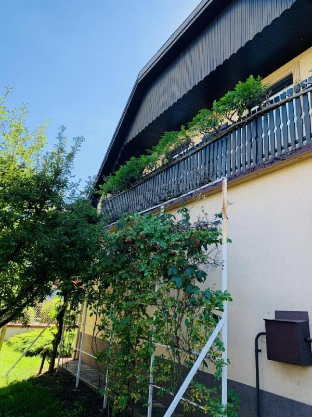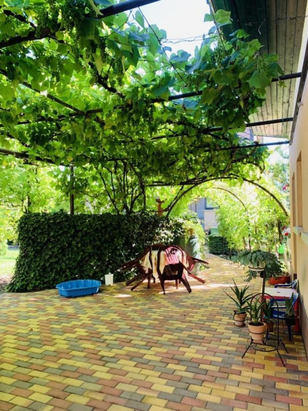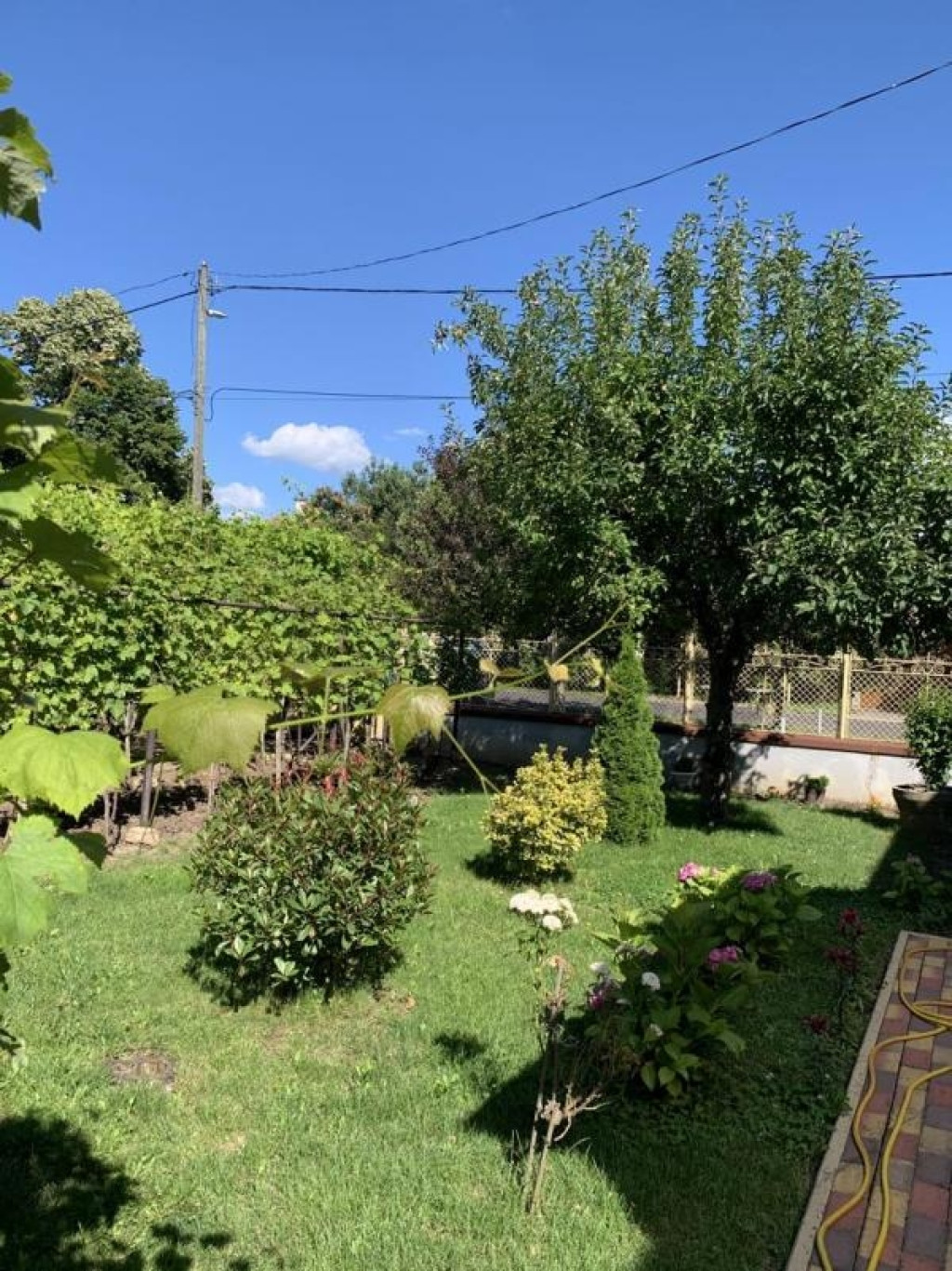 Kertje körbe veszi a házat, ami szép, gondozott. A ház kis teraszáról lehet gyönyörködni benne.