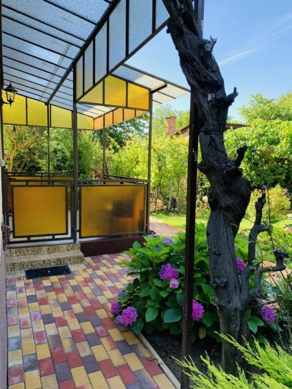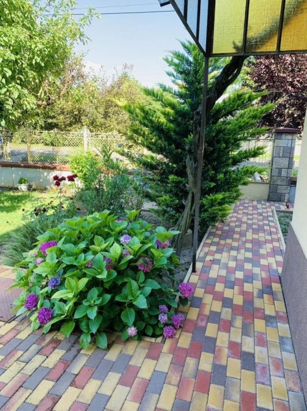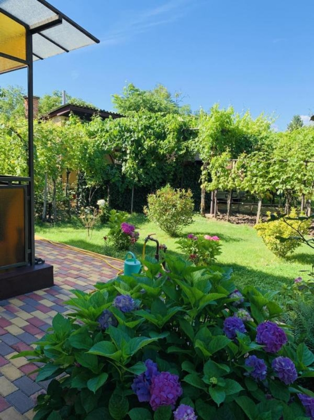 Kertje körbe veszi a házat, ami szép, gondozott. A ház kis teraszáról lehet gyönyörködni benne.