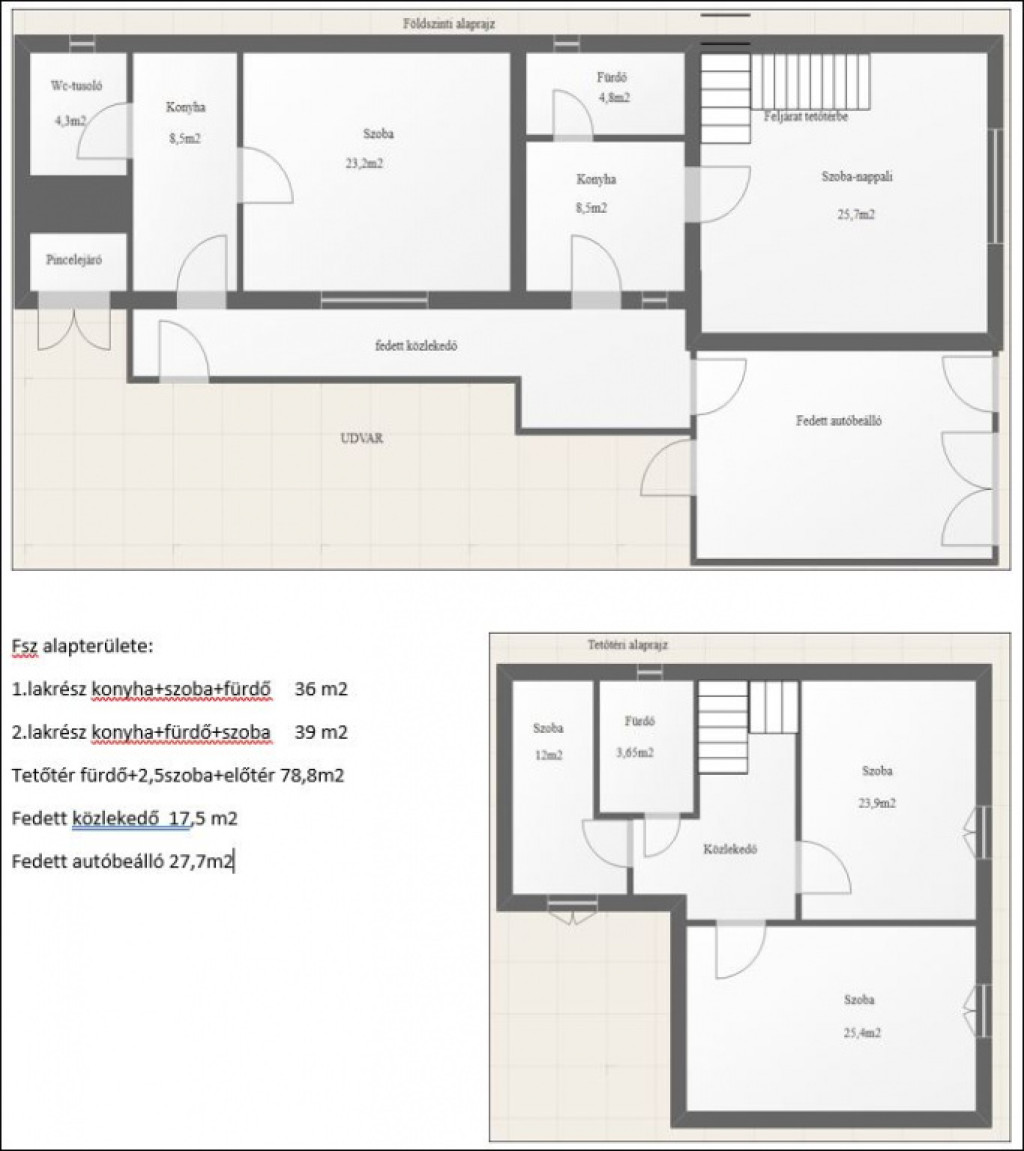 A csendes, átmenő forgalomtól mentes , tiszta , rendezett ,térköves útburkolatú utcában található 2 szintes családi házban 4,5 szoba valamint 2db konyha és 3 db tusolós fürdő helyiség került kialakításra. Az utcai kapubejárat zárt-fedett autóbeállási lehetőséget ad, a központi fűtéses ház 2 különálló lakrésze egy közös zárt üvegezett közlekedőből nyílik.