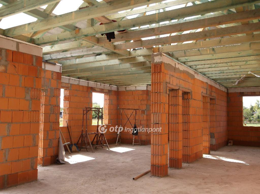 Már állnak a falak és készül a tető! Heves vármegye, Gyöngyöstől 3 km-re, Budapesttől 80 km-re fekvő, dinamikusan fejlődő Gyöngyöshalász déli kertvárosi lakóövezetében (új osztású, jelenleg kialakuló) kínálok eladásra új, tégla-és szilikát (válaszfalak) építésű, 99 m2, földszintes, 3+1 szoba + amerikai-konyhás nappali elosztású családi házat 800 m2 telken, 14,5 m2 terasszal és az udvaron autó beállási lehetőséggel. Ha már most lefoglalja, garantáltan ezen az áron kapja meg! Építkezés befejezésének várható ideje legkésőbb 2026.08. hó. A bejáraton keresztül egy előtérbe jutunk. Ebből nyílik a közös légtérbe lévő nappali-étkező-konyha és egy közlekedő. A közlekedőből nyílik három egész és 1 félszoba, egy fürdőszoba, wc, kamra és a gépészeti helyiség. A tetőszerkezet kontyolt nyeregtető, gomba és lángmentesített fűrészelt fenyőből, 25 cm-es ásványgyapot szigeteléssel és párazáró fóliával. Héjazata antracit égetett cserép. Külső falai 15 cm-es szigetelést kapnak. A nyílászárók műa. hőszigeteltek, belső ajtók MDF szerkezetű, kazettás, üvegezett kivitelűek. A szobákat és az étkezőt laminált padló, a többi helyiséget járólap (gresslap) borítja. Víz - csatorna és villany telken belül, gáz nincs. A fűtésről és a meleg vízről hőszivattyú gondoskodik (padlófűtés). A műszaki tartalmak, hideg - és melegburkolatok, elektromos kiépítések és tartozékok, klíma beszerelés, külső tereprendezés ....... választhatóak -költségegyeztetéssel- a munkálatok megkezdéséig. A fürdőszobában zuhanyfülke, de kérés esetén kád is választható. Az építkezés folyamatáról újabb fotókat töltök fel. Csendes, nyugodt, kertvárosias, családi házas épületekkel beépítésre kerülő utcában helyezkedik el, jó szomszédok társaságában. Ha felkeltette érdeklődését hívjon, további műszaki adatokkal szolgálok. Személyautóval és autóbusszal egyaránt jól megközelíthető, közvetlen helyi járattal Gyöngyösre és helyközi járatokkal a nagyobb városokba. A településen óvoda, iskola, piac, posta, orvosi rendelő, fogászat, gyógyszertár, horgásztó, művelődési ház állandó programokkal, könyvtár, pizzéria. A közelben számtalan munkalehetőség a Pipis-hegyen, Gyöngyösön az ipari parkban, Gyöngyöshalászon és Adács mellett. Ingatlanirodánk ügyvédi háttérrel, CSOK, babaváró hitel, Otthon Start Hitelprogram, valamint kamatkedvezményes hitel ügyintézésével támogatja ügyfelei ingatlanvásárlását. Ingyenes banki segítség! Hívjon bizalommal!