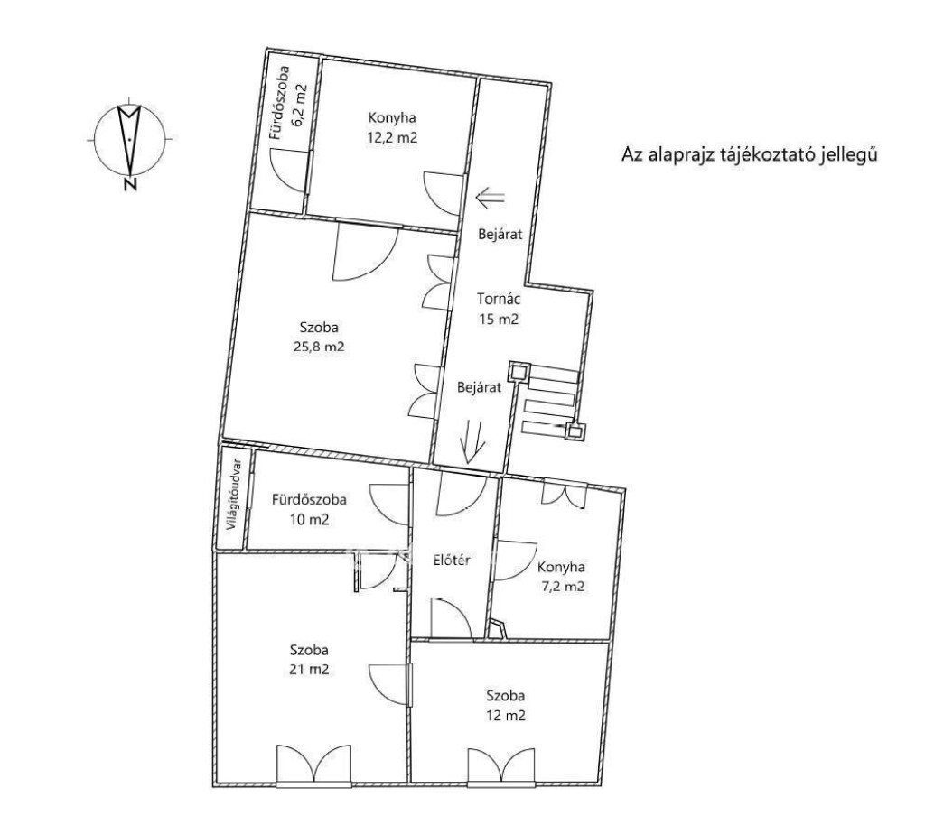 o A két lakás közösen egy 15 m2-es tornácról nyílik.