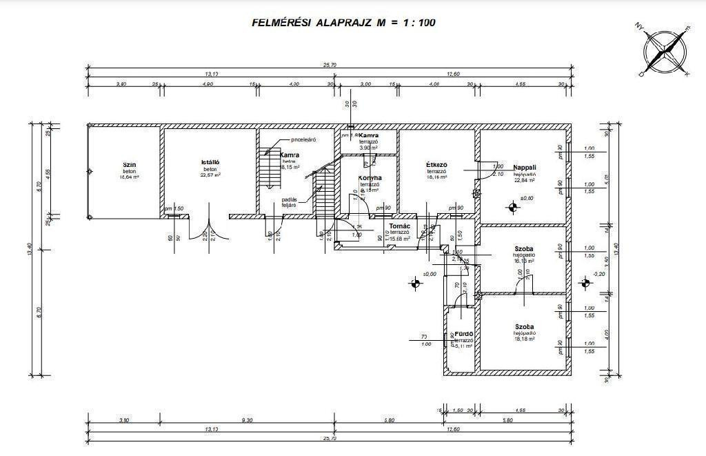 Az ingatlan 110 m2-s, tégla építésű, 5442 m2 telek tartozik hozzá, 30 %-a beépíthető, és 22 m széles az utcafront.