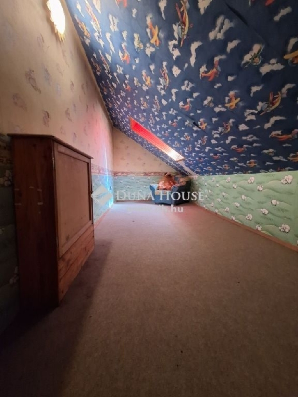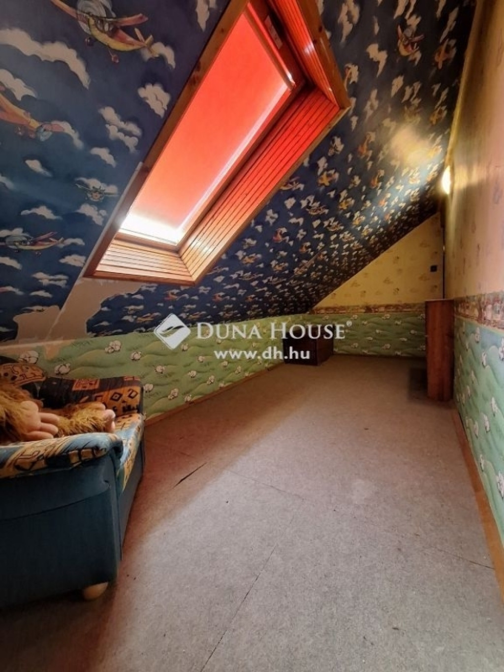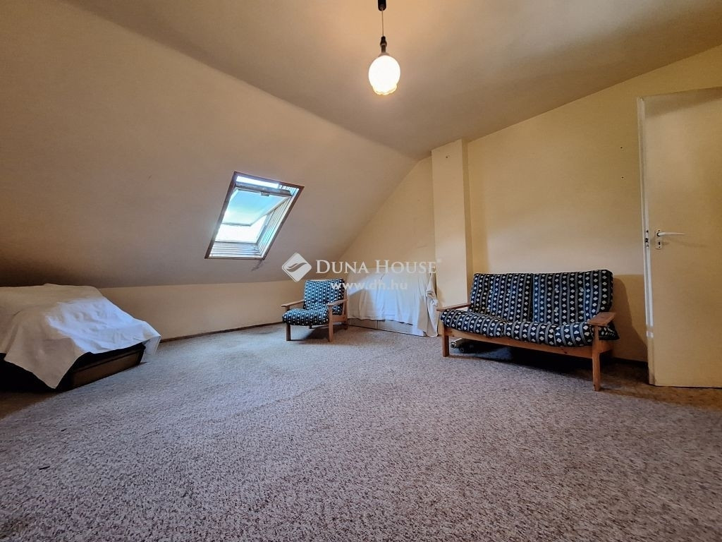 Emelet: 4 nagyméretű szoba, (mindegyikben csak az egyik falsík ferde), fürdőszoba WC-vel, közlekedő