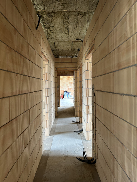 -A szobákban tölgy színű laminalt padló. A beltéri ajtók szintén tölgy színűek, fekete kilinccsel, fekete díszcsikkal.
