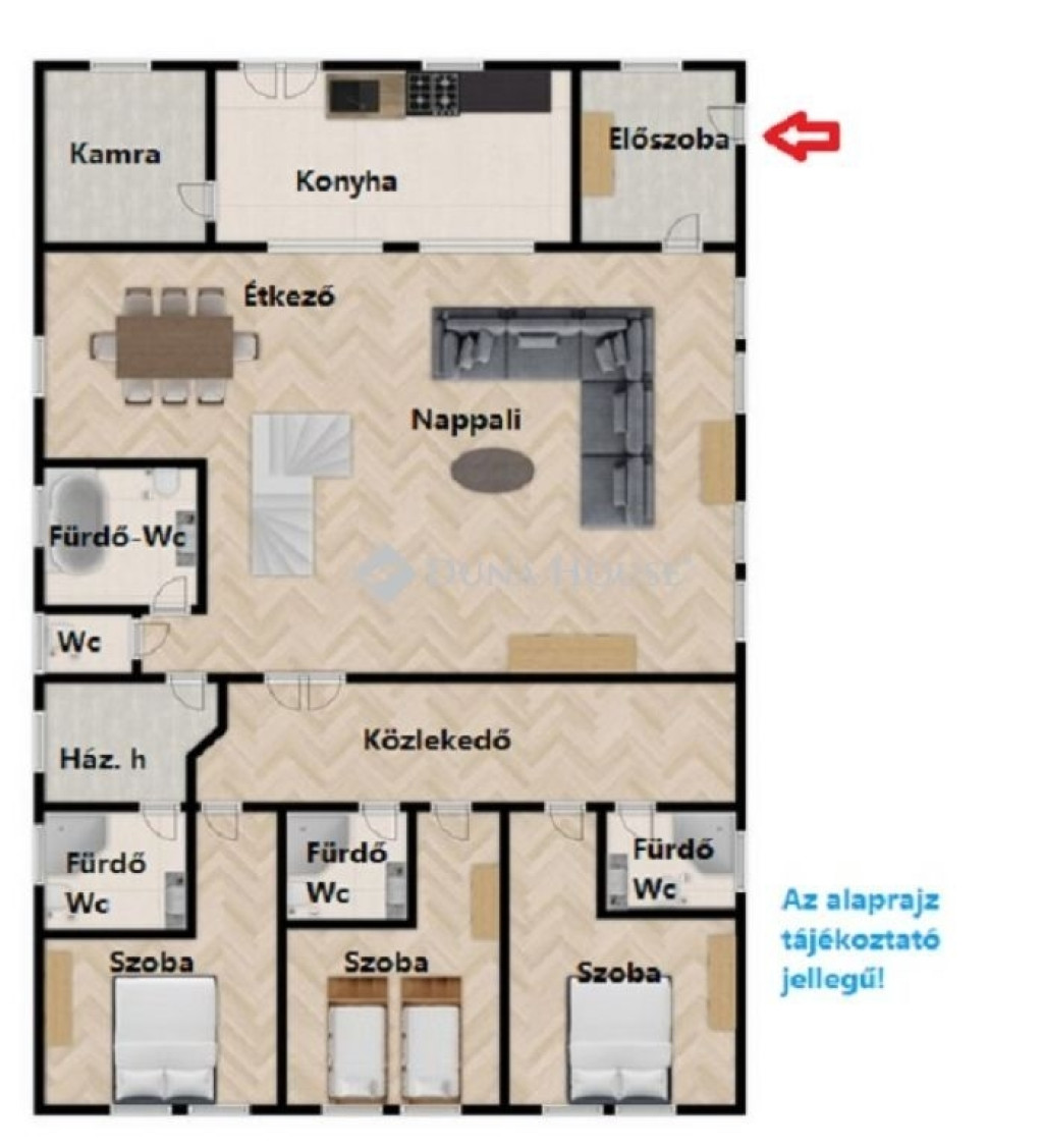 Hasznos alapterület: 225 m² (földszint + tetőtér)