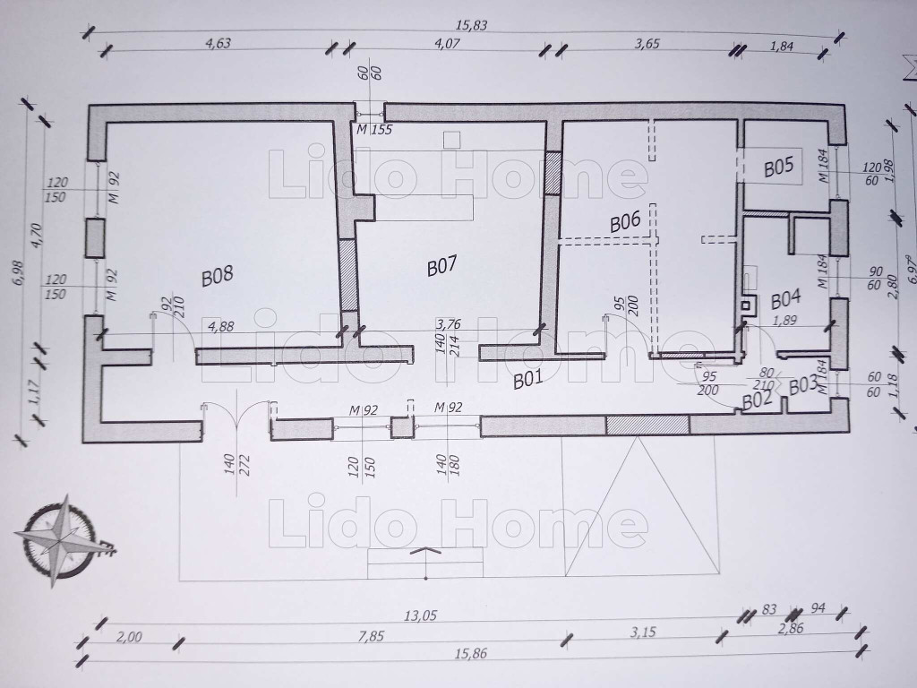 -helyiségek: előszoba, 2 szoba, konyha-étkező, fürdőszoba zuhanyzóval, WC, közlekedő