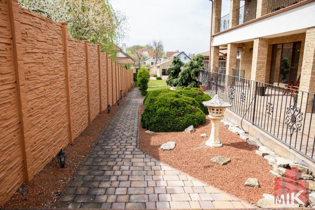 - Parkosított, térkövezett, kertész által rendszeresen gondozott telek. Automata locsolórendszer, átgondolt esővíz-elvezetés.