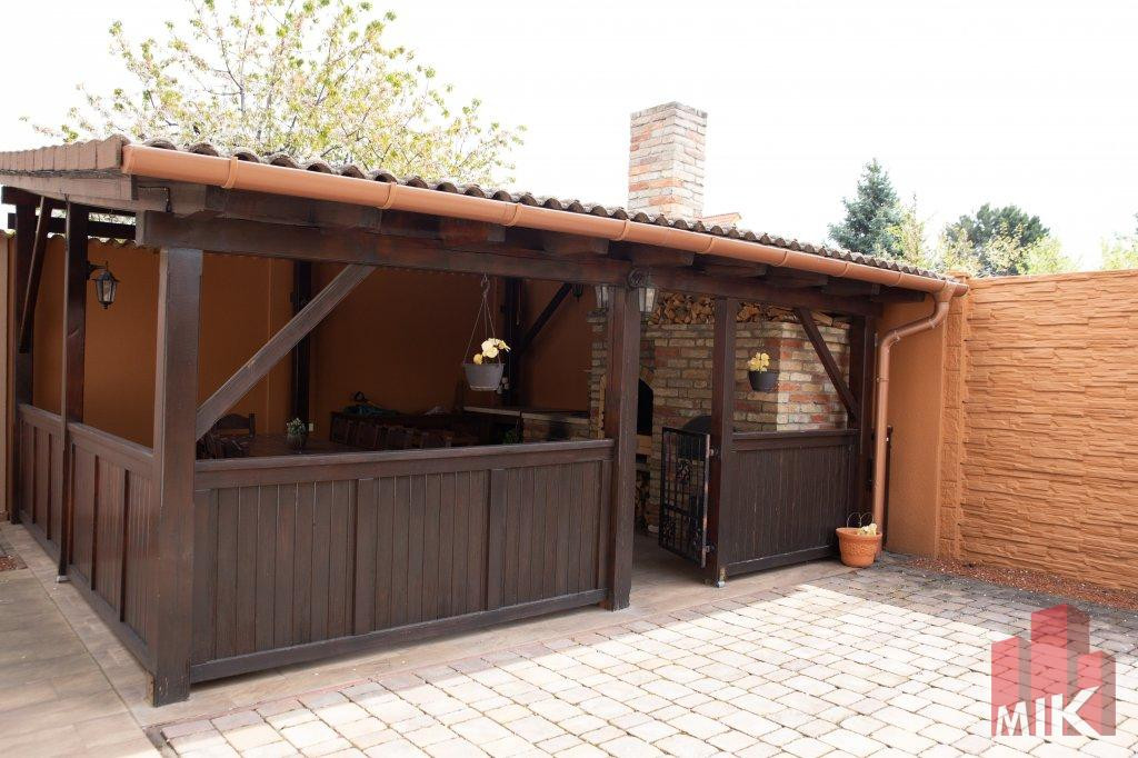 - Külső, fedett, faépítésű 10 fős vendégváró, épített kerti sütő - kemence.