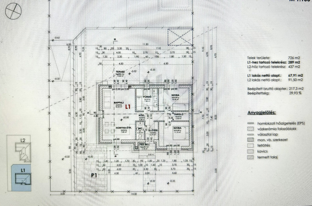 Telekméret: 726 nm területű telken épül, ebből 289 nm saját használatú.