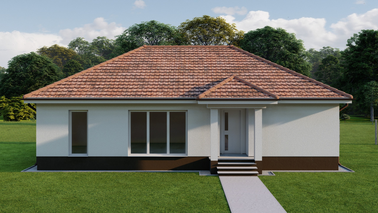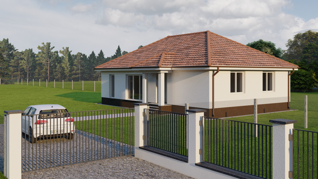 Az emelt szintű fűtés kész ár, tartalmazza a telek árát, valamint a közműfejlesztési hozzájárulásokat. Igény esetén kulcsrakész befejezés 120.000,- Ft/nm áron kérhető. Várható átadás: 2026. tél. A fotón egy már elkészült, ugyan ilyen típusú ház látható.