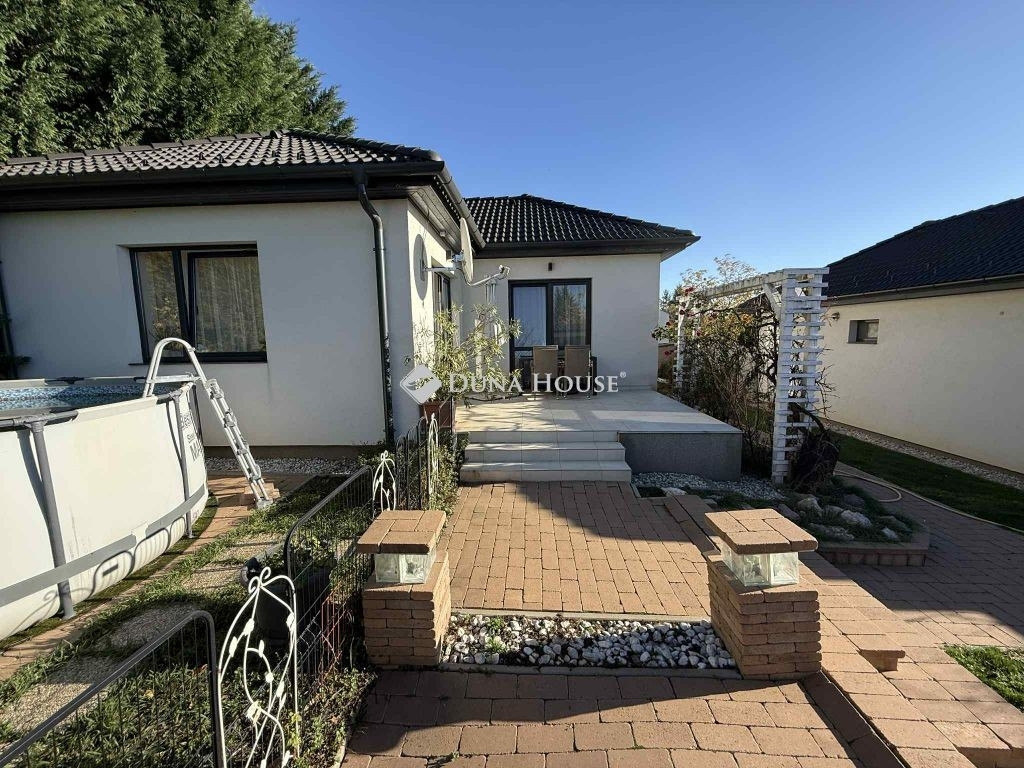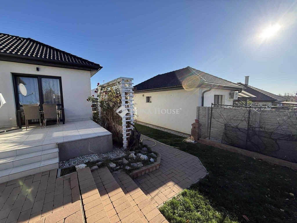 Győrújbarát kedvelt, zöldövezeti utcájában eladó egy 2017-ben épült, kiváló állapotú, 90 m²-es családi ház, 480 m²-es, gondozott kerttel.