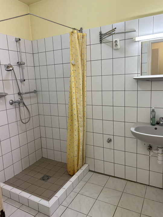 A belső terek elrendezése: előtér, nappali, 2 külön nyíló szoba (az egyik közvetlen terasz kapcsolattal) konyha-étkező (szintén terasz kapcsolattal), fürdőszoba zuhanyzóval, külön álló wc, kézmosó. A válaszfalak gipszkartonból készültek, így a lakótér aránylag kedvező ráfordítással nappali-konyha-étkező + 3 külön nyíló szoba elrendezésűvé alakítható.